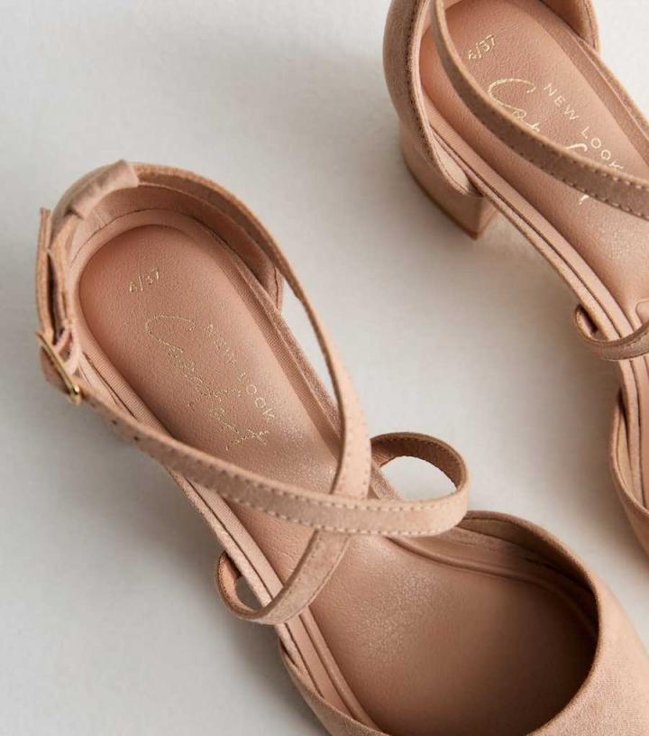 – Comfort lining- Cushioned heel- Cushioned underfoot padding- Flexible soles- Soft suedette fabric- 2-part design- Pointed toe- Gold-tone buckle- Cross ankle-strap fastening- Mid block heel