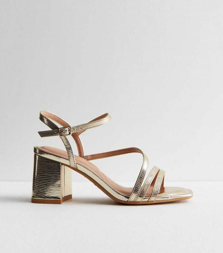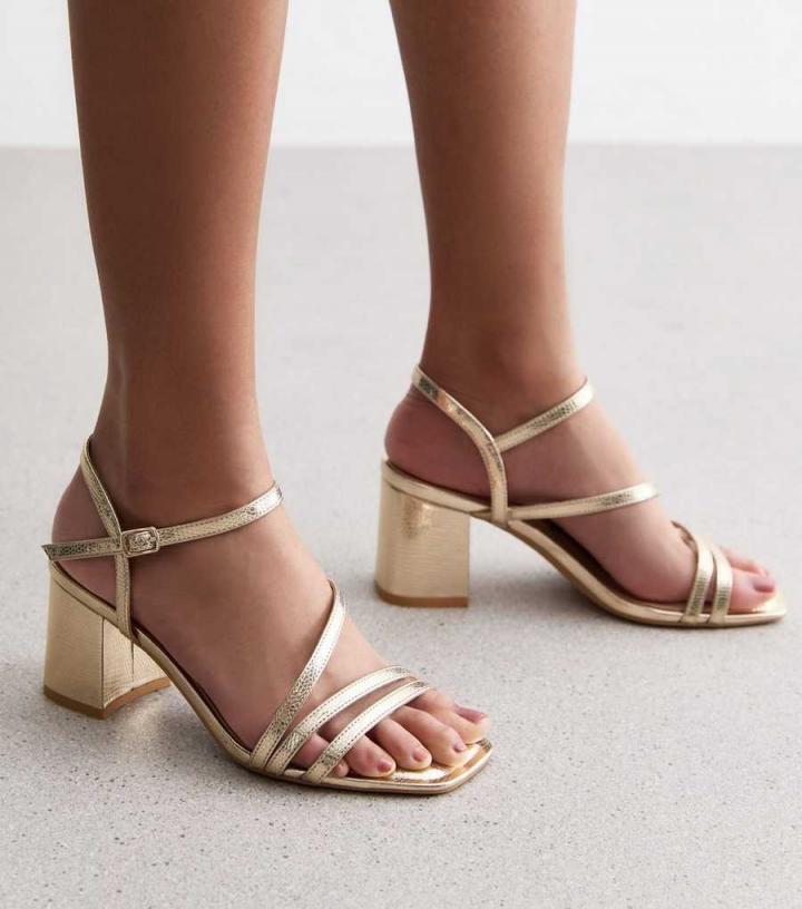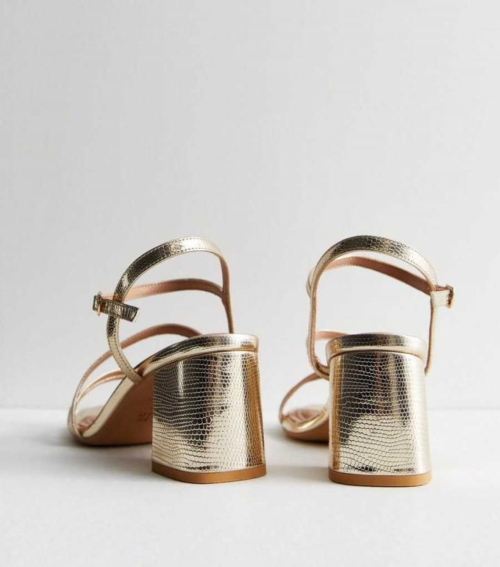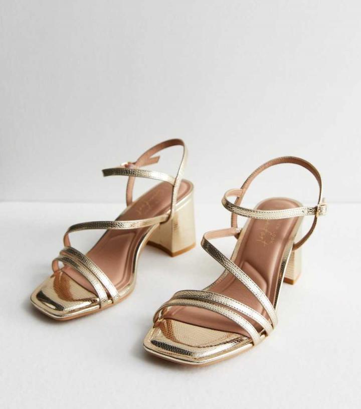 – Wide fit- Extra measure across the insole, joint and instep- Cushioned underfoot padding- Flexible soles- Gold- Metallic finish- Strappy design- Ankle strap fastening- Flat sole- Block heel- Heel height: 2.5" / 6.5cm