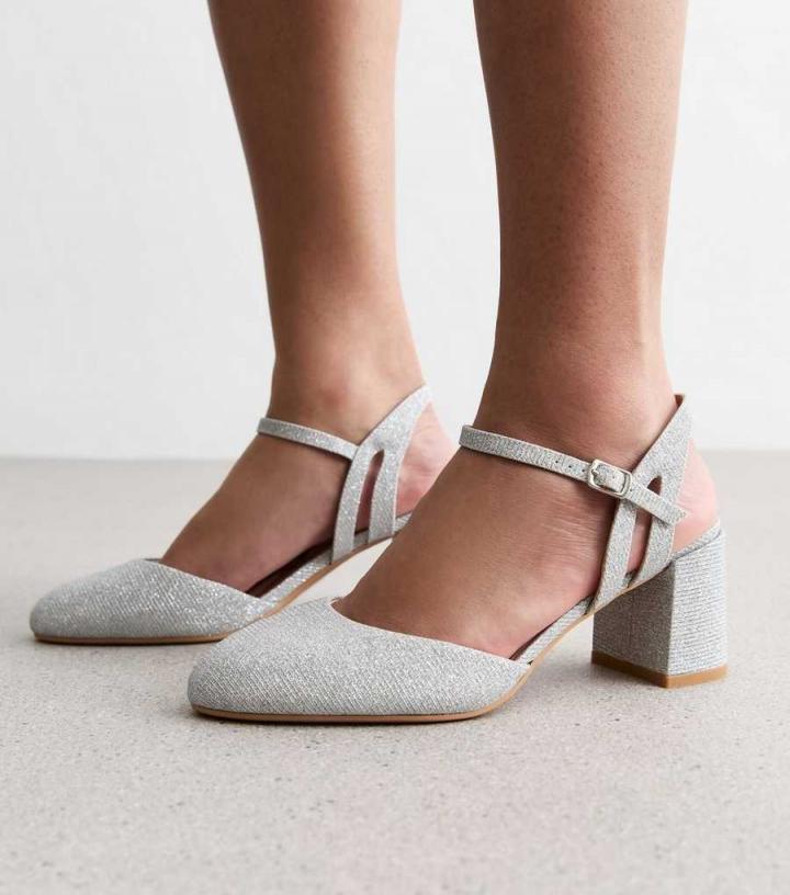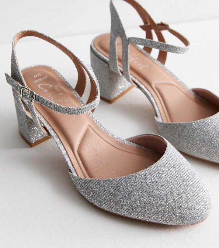 – Wide fit- Extra measure across the insole, joint and instep- Silver- Shimmer glitter finish- Almond toe- 2-part design- Ankle strap fastening- Flat sole- Low block heel- Heel height: 2.5" / 6.5cm