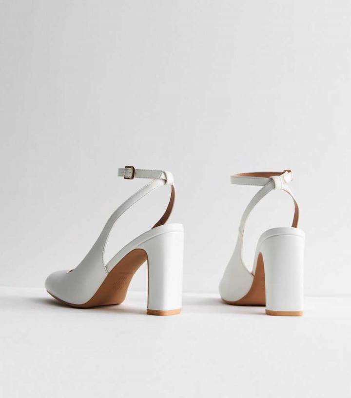 Outfit elevation guarenteed, these white heels have a stylish slingback strap and supportive adjustable ankle strap for all day or night support. – Wide fit- …