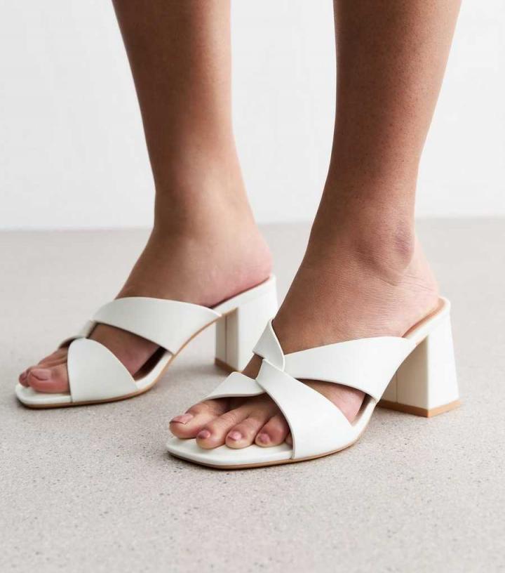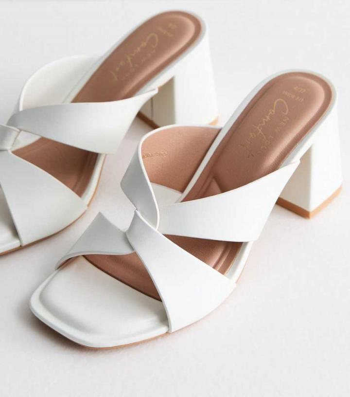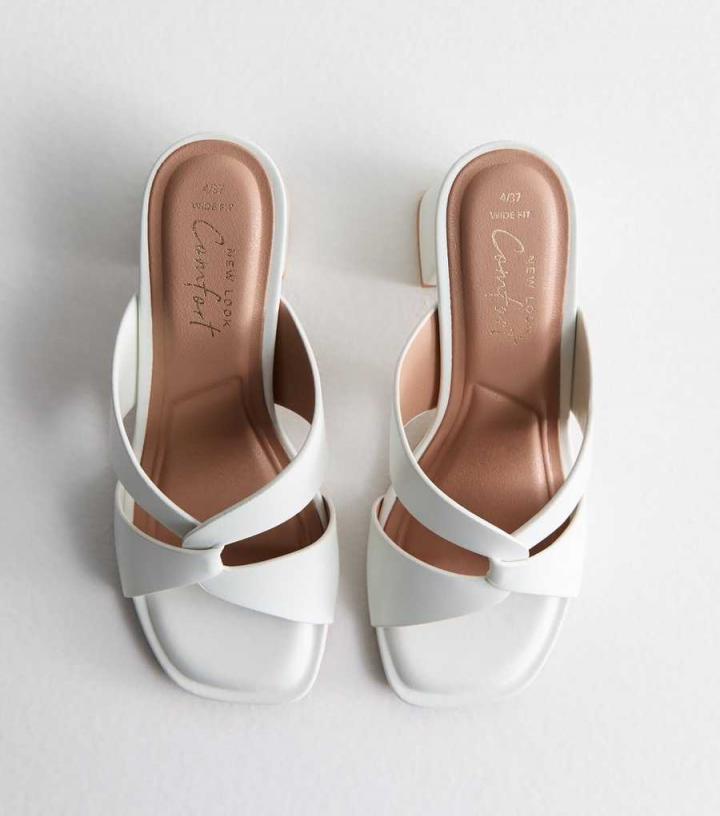 Heels | New Look Womens Wide Fit White Leather-Look Twist Block Heel Mules