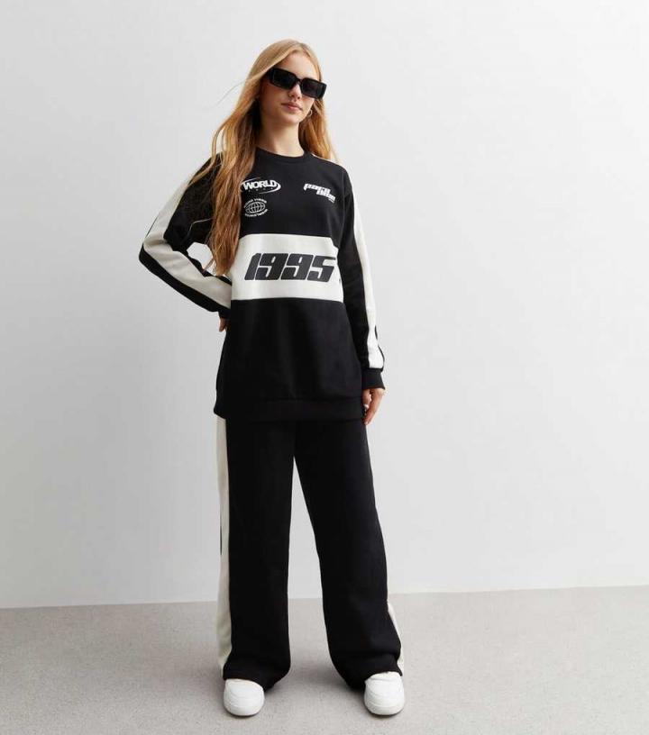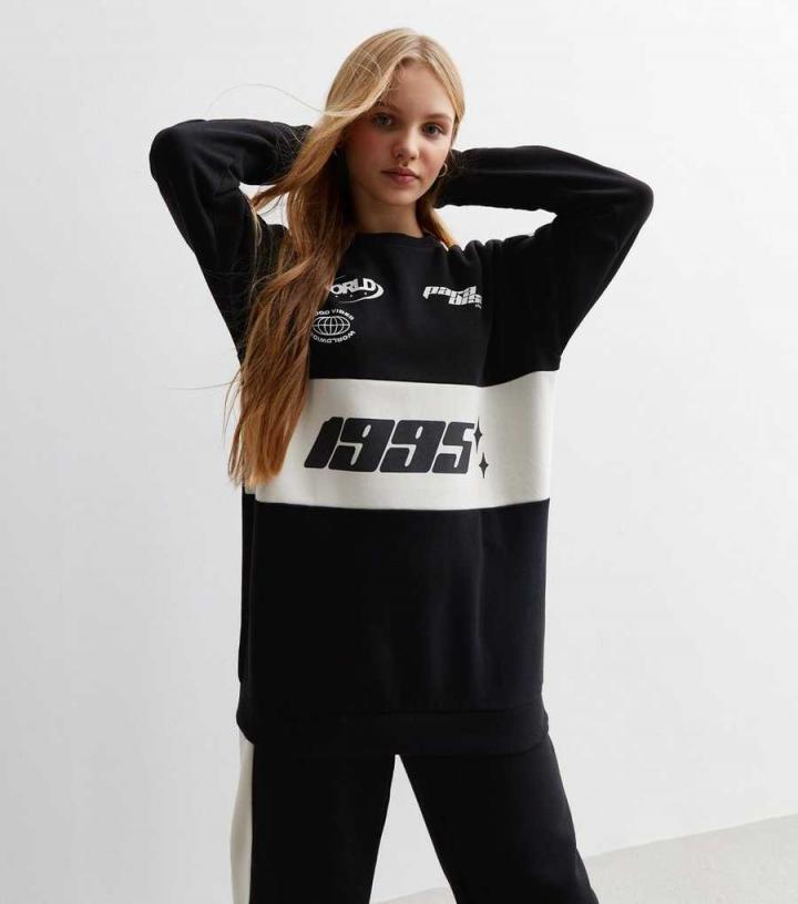 Hoodies & Sweats | New Look Girls Black 1995 Logo Longline Sweatshirt