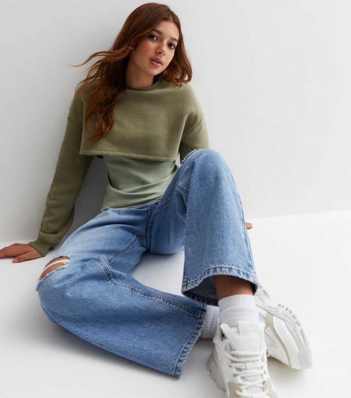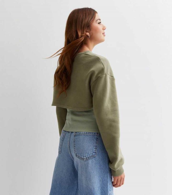 GirlsKhaki 2-in-1 Crop Sweatshirt New Look