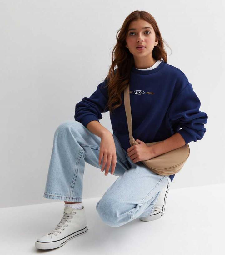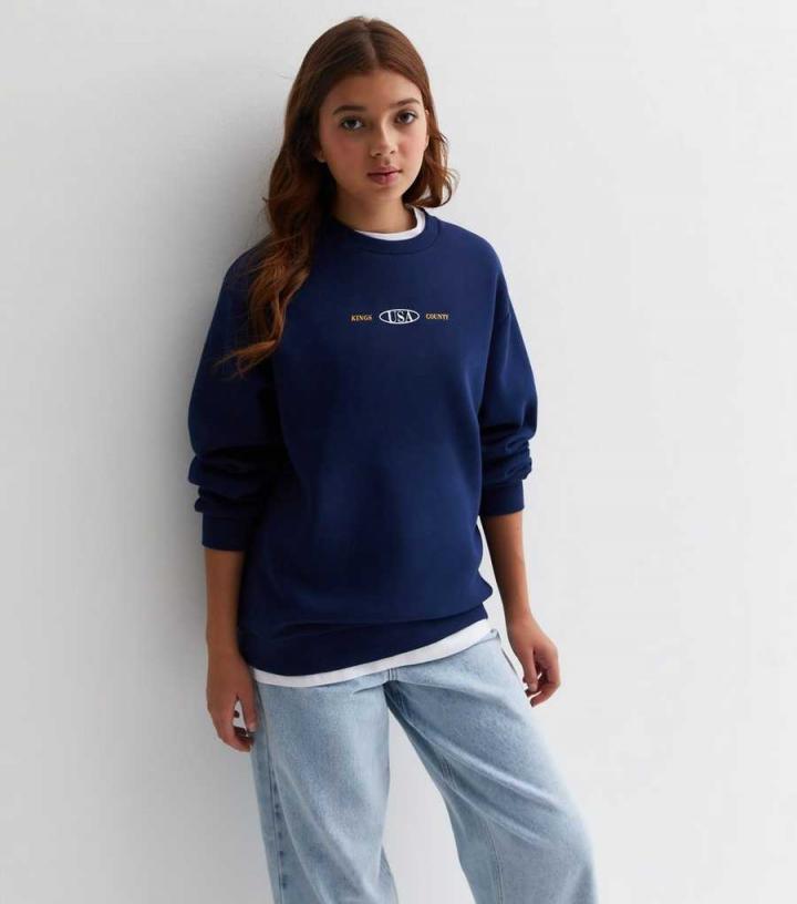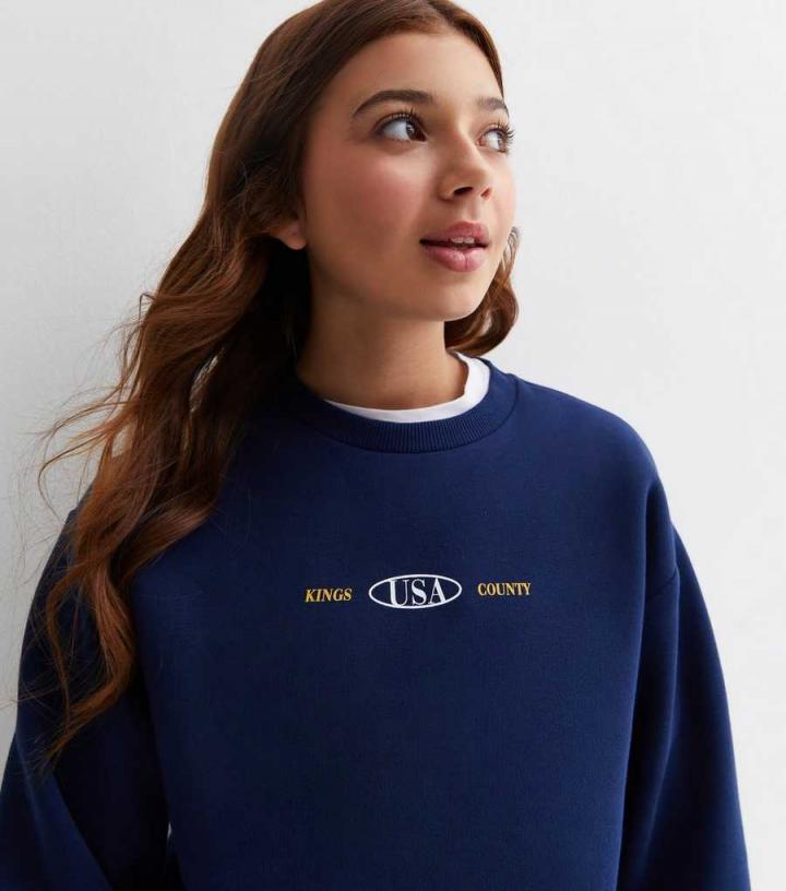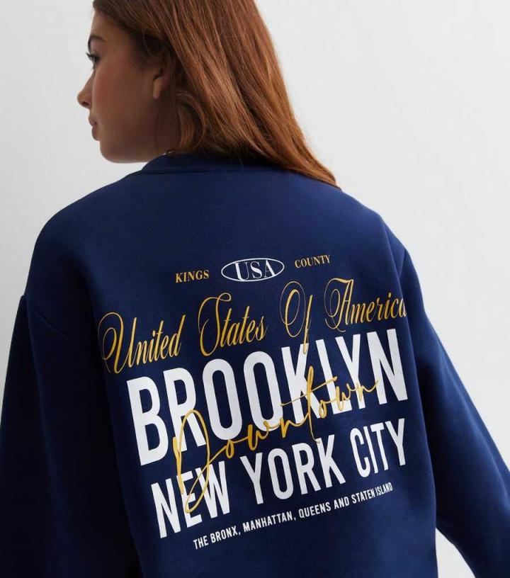 Hoodies & Sweats | New Look Girls Navy Brooklyn Front and Back Logo Sweatshirt