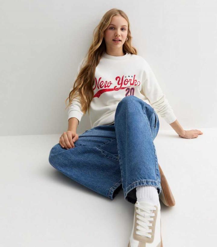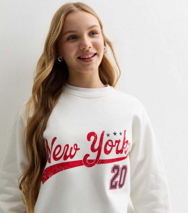 GirlsOff White New York Crew Neck Sweatshirt New Look