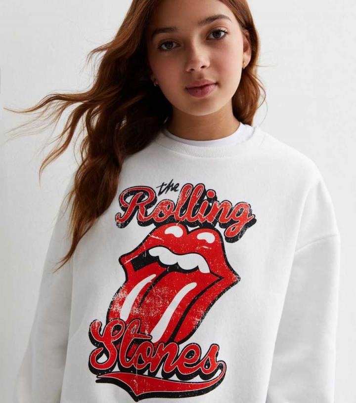 Hoodies & Sweats | New Look Girls White The Rolling Stones Logo Sweatshirt