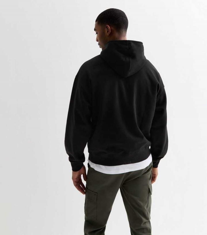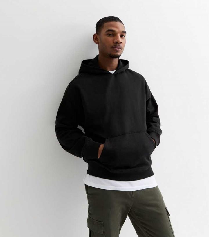 Mens Black Pocket Front Oversized Hoodie New Look…