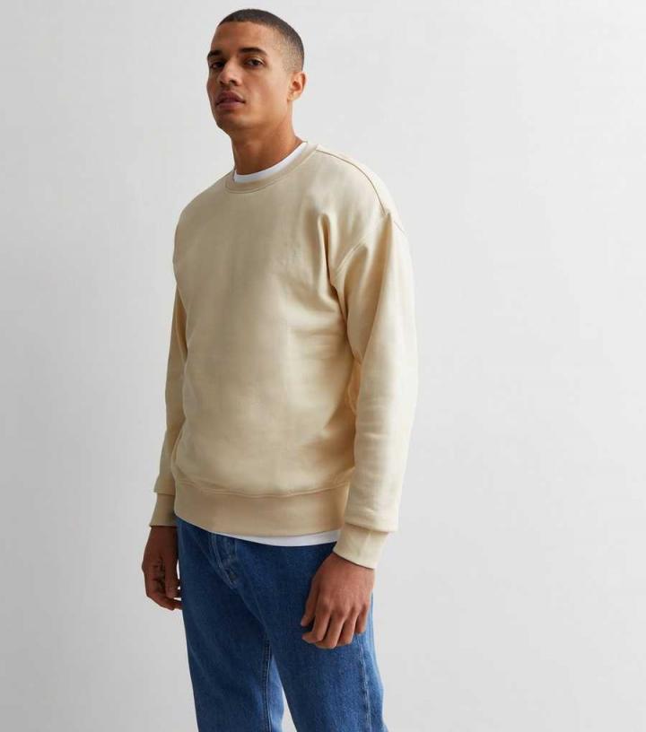 Mens Cream Crew Neck Relaxed Fit Sweatshirt New Look…