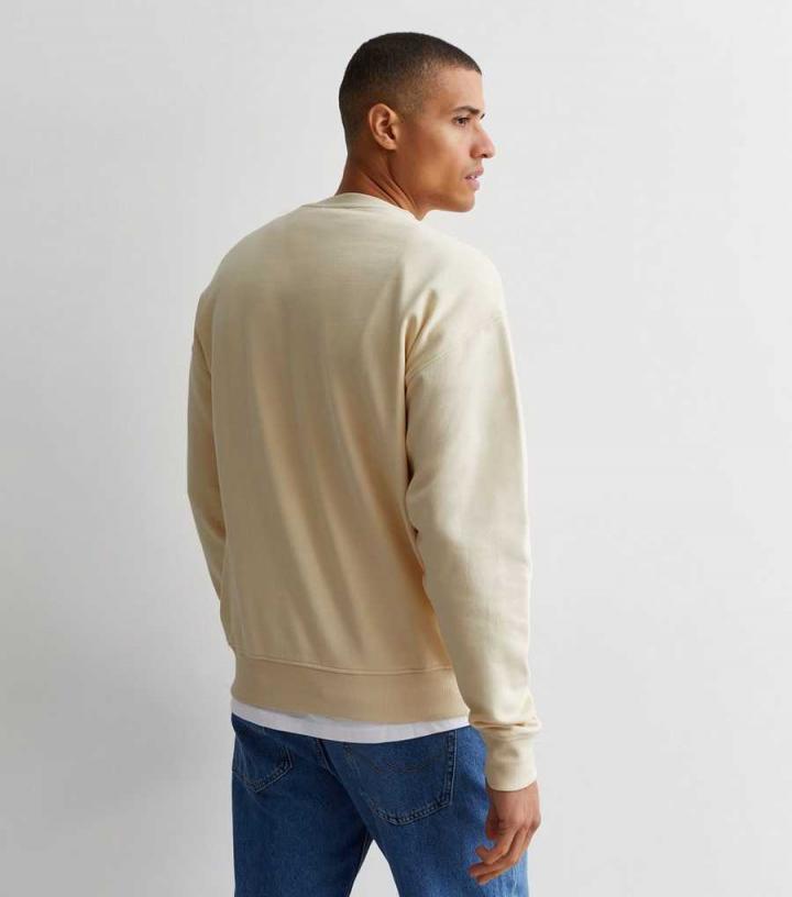 Mens Cream Crew Neck Relaxed Fit Sweatshirt New Look