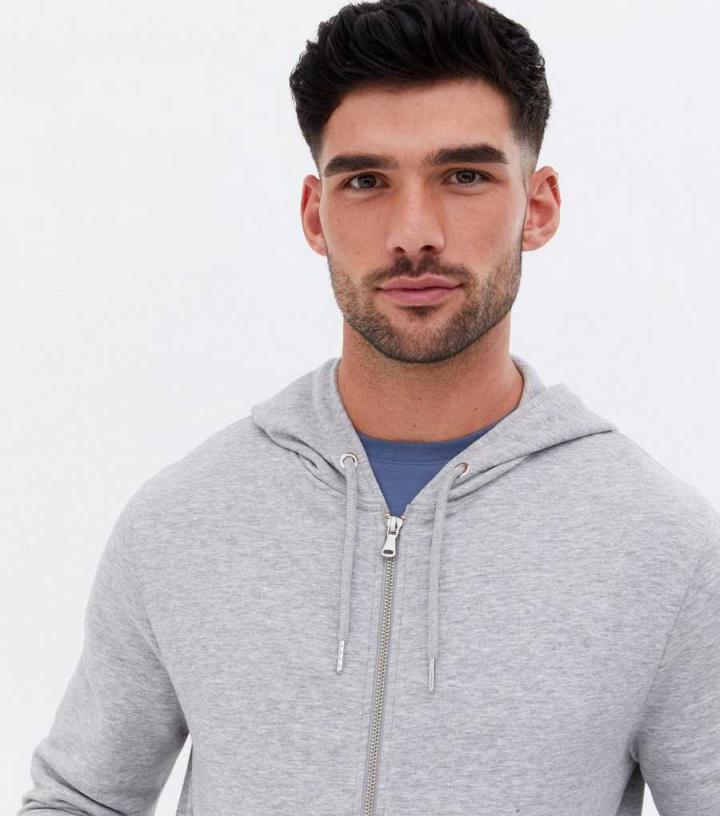 Mens Grey Marl Jersey Long Sleeve Zip Hoodie New Look…