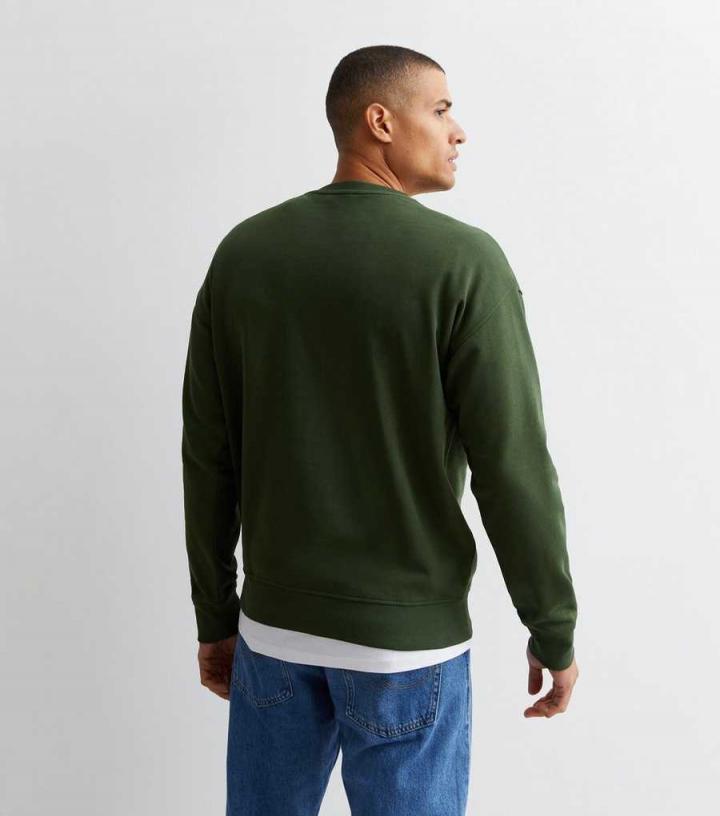 Mens Khaki Mountain Embroidered Crew Neck Relaxed Fit Sweatshirt New Look