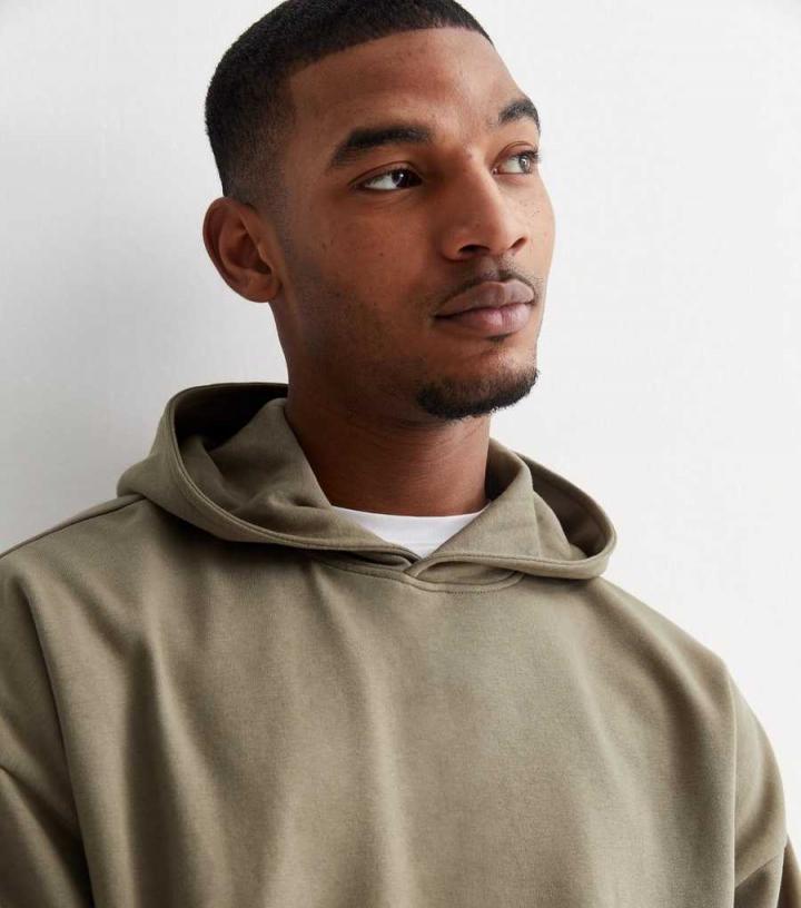 Mens Khaki Pocket Front Oversized Hoodie New Look…