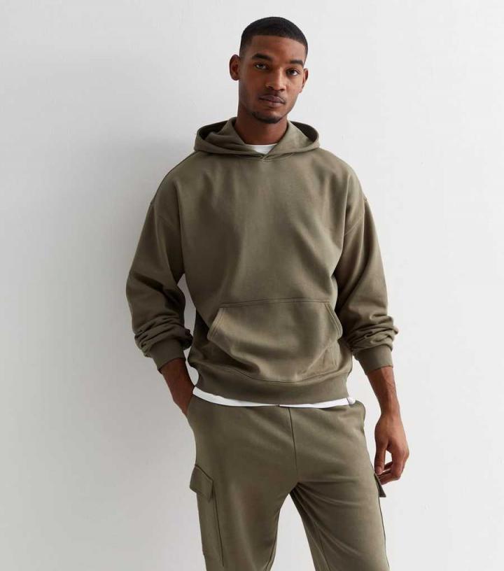 Hoodies & Sweats | New Look Mens Khaki Pocket Front Oversized Hoodie