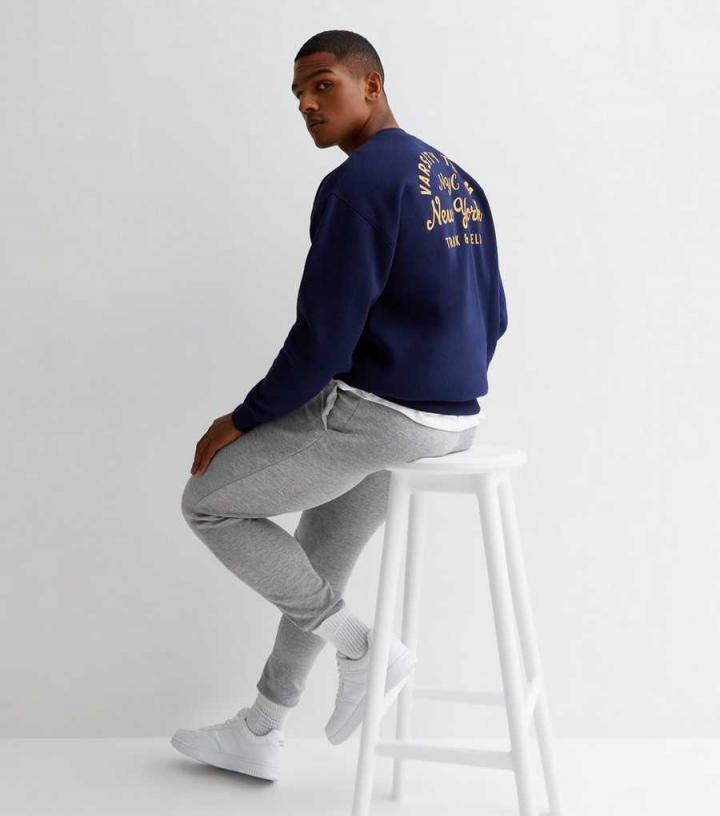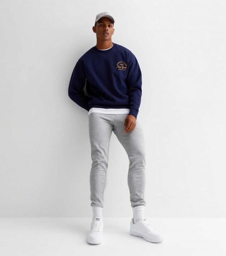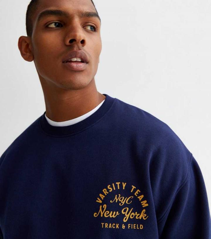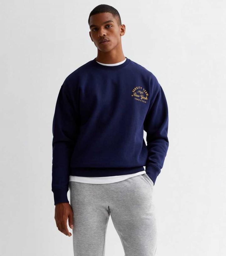 Mens Navy New York Varsity Crew Neck Relaxed Fit Sweatshirt New Look…