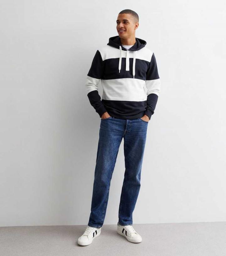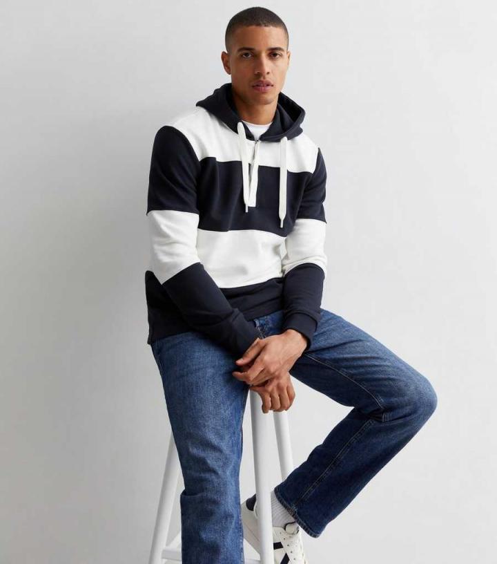 Mens Only & Sons Navy Stripe Hoodie New Look…