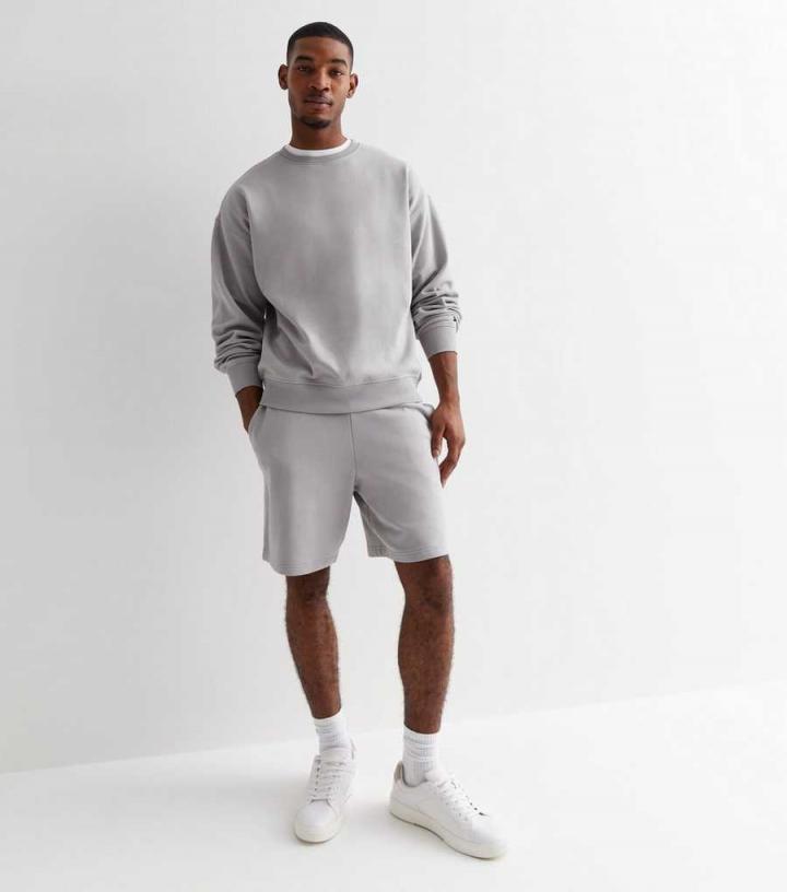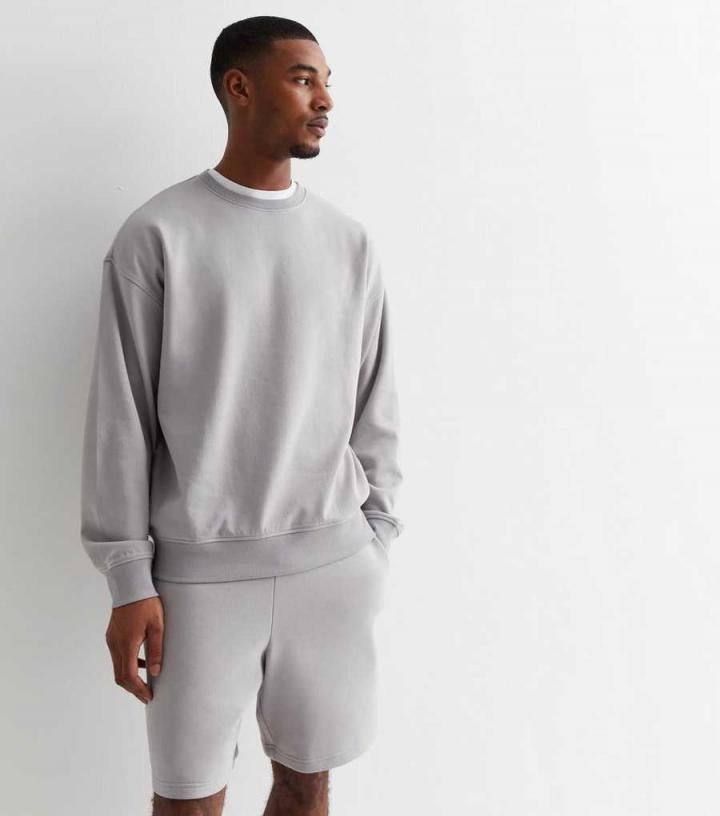 Mens Pale Grey Crew Neck Oversized Sweatshirt New Look