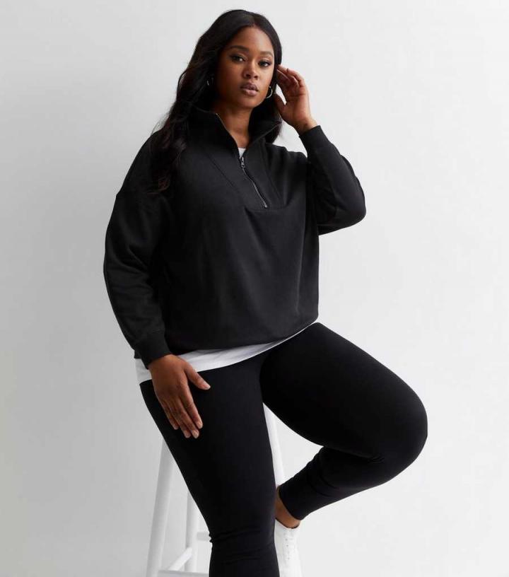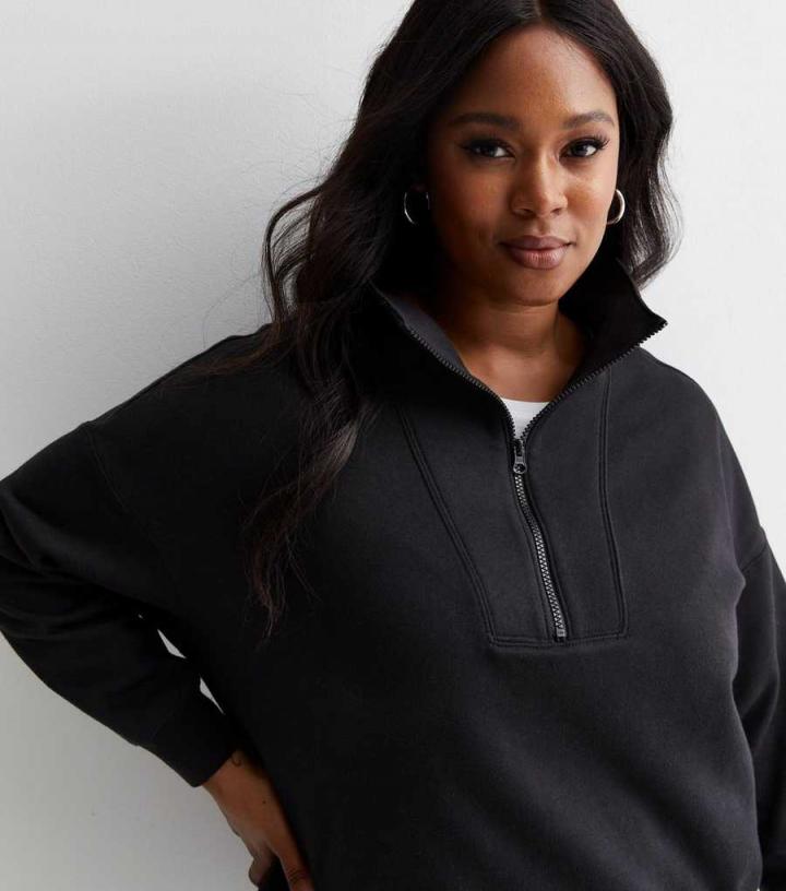 Curves. Meet the piece you’ll reach for day in, day out this season. Crafted from a soft cotton blend, this black zip neck sweatshirt is the perfect layering piece. Throw it on over jeans and a t-shirt when the temps start to drop.