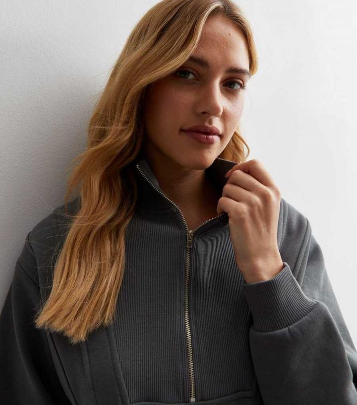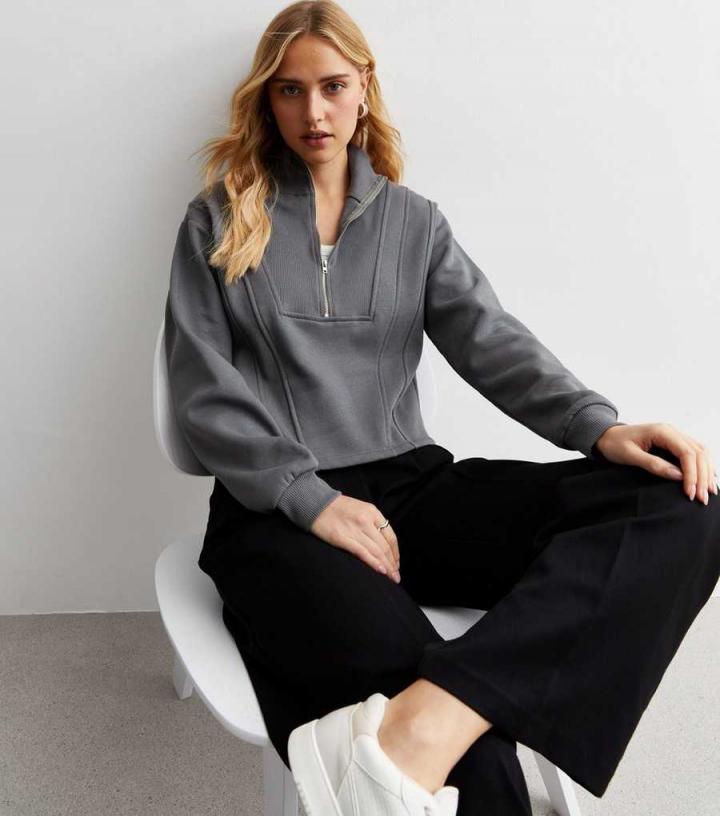 Designed in a soft cotton blend with a practical high zip neckline, this dark grey sweatshirt is sure to be one you’ll reach for on repeat. We love it best with flared trousers and trainers for a comfy yet cool fit.