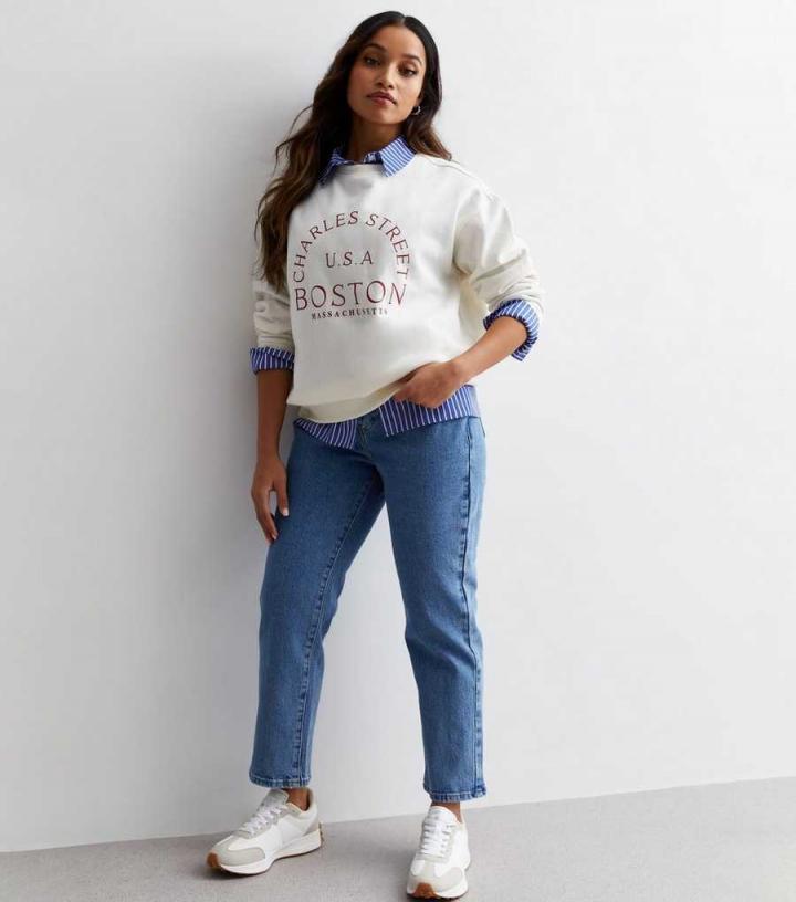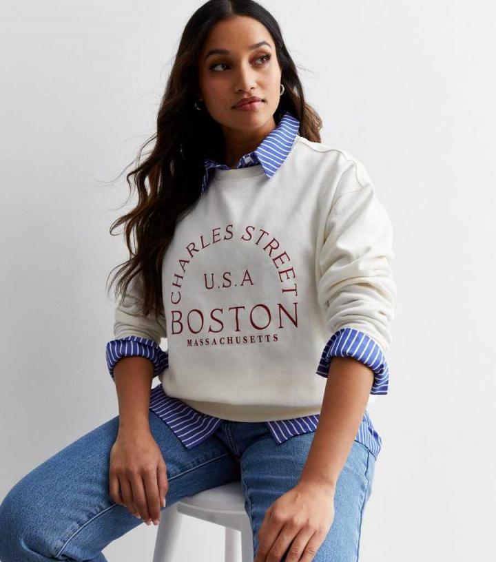 Hoodies & Sweatshirts | New Look Womens Petite Off White Boston Logo Sweatshirt