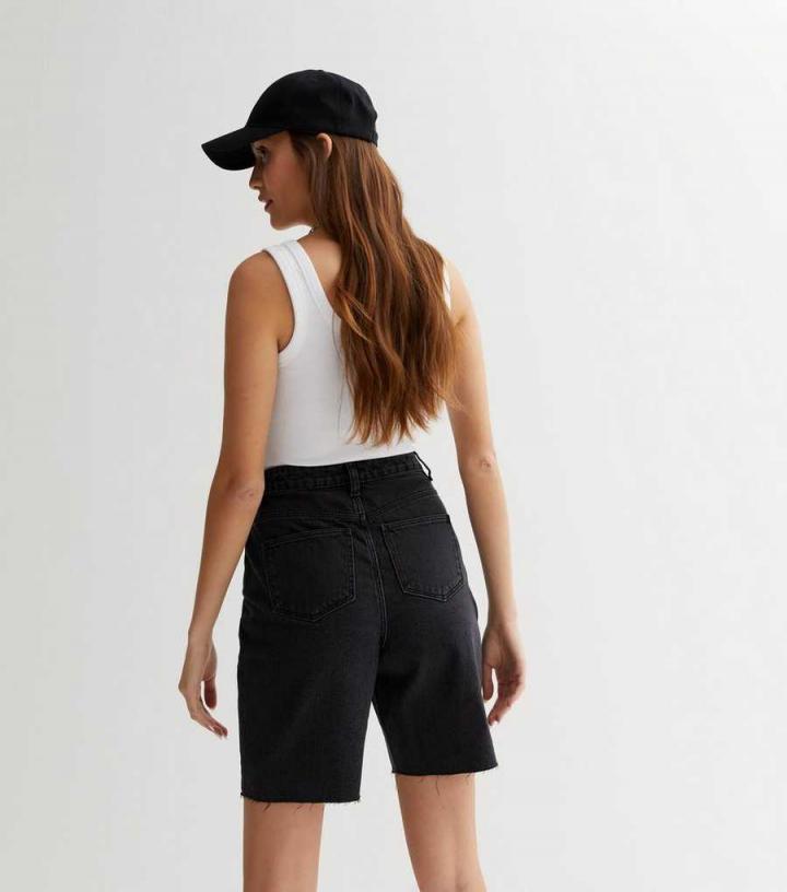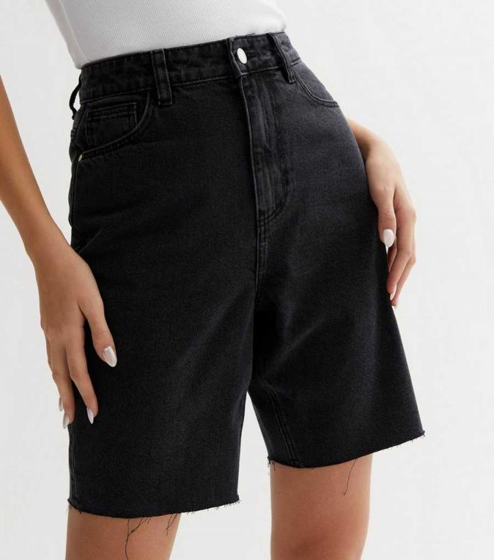 Jeans & Denim | New Look Womens Black Denim Raw Hem High Waist Bermuda Shorts