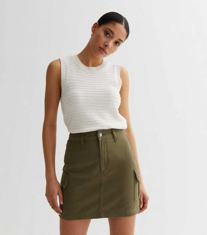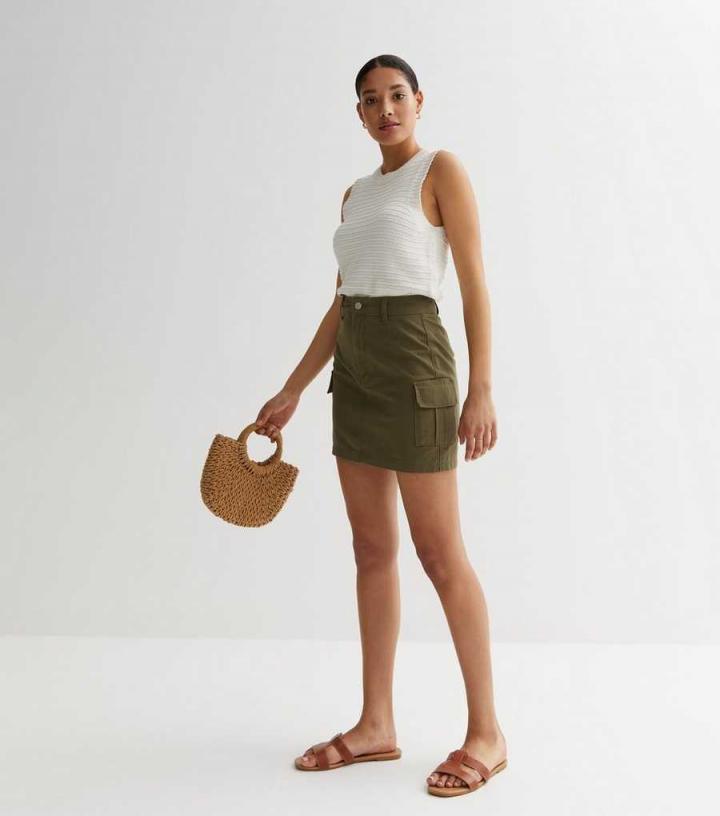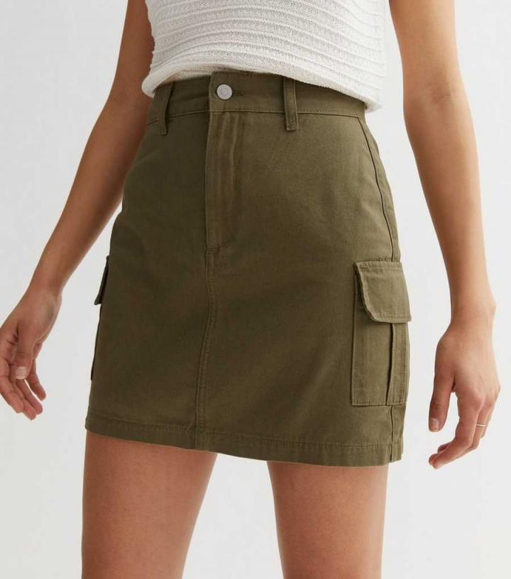 A new-season staple, this khaki mini skirt features a trending utility style and a flattering a-line fit. Wear with vest tops and sandals for all your sunny-day plans.