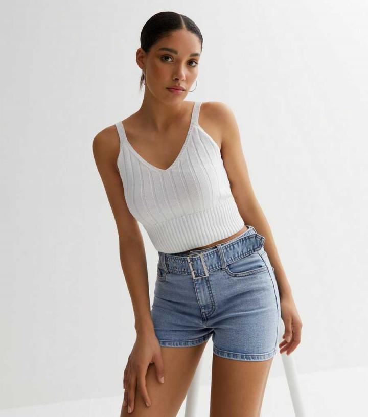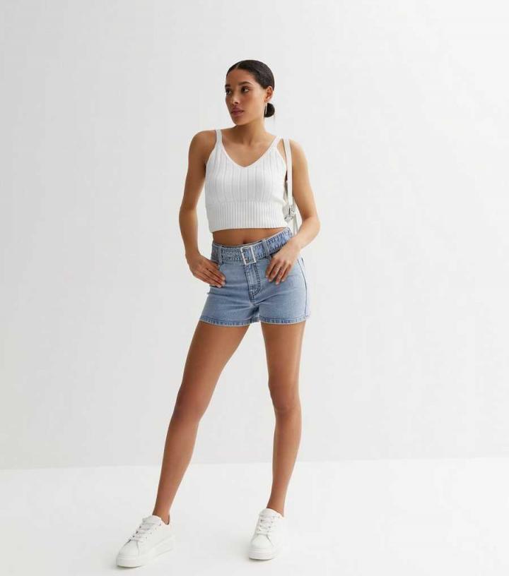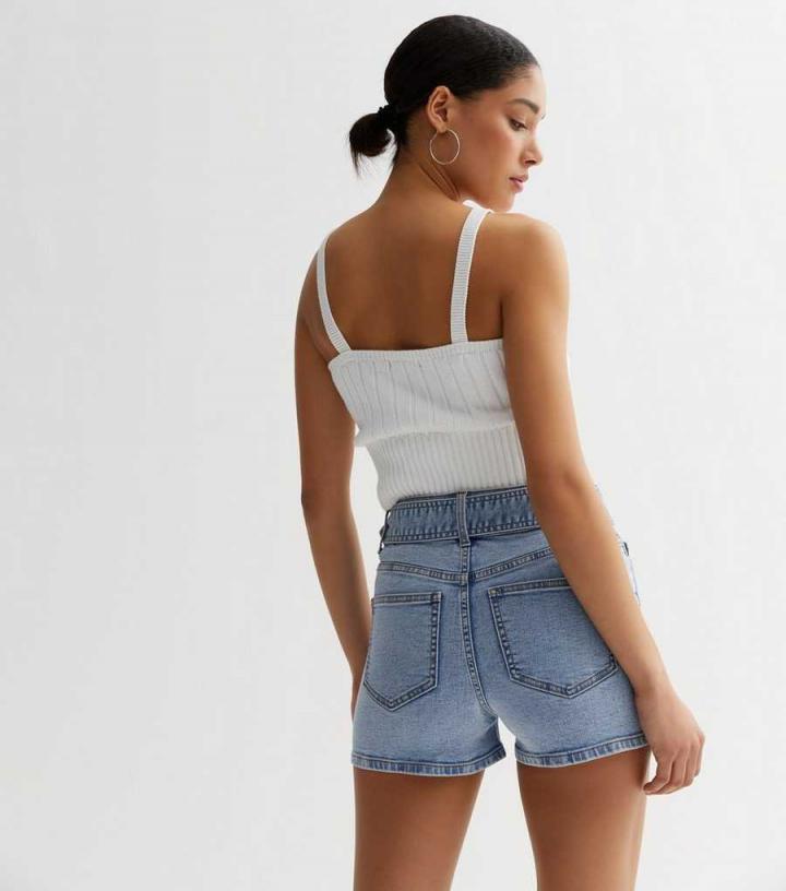 – High waist- 5-pocket design- Belted detail- Thigh length- Button and zip-fly fastening- Light-wash denim- Slim fit- Model is 5’8"/173cm and wears UK 10/EU 38/US 6