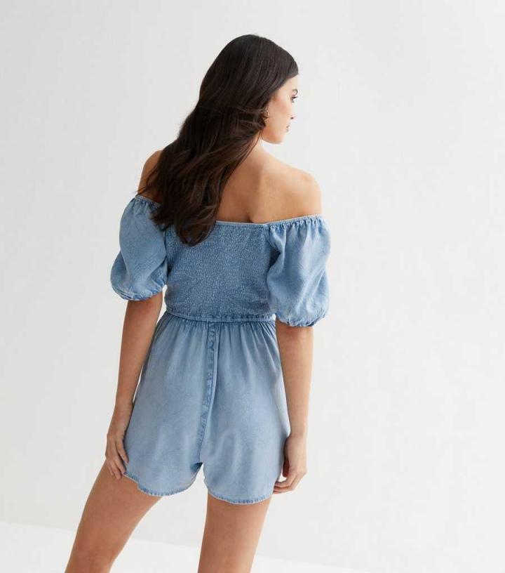 Boasting puff sleeves and a shirred bodice, this blue playsuit is a pretty pick on sunny days. A classic denim finish makes it a timeless piece you’ll want to wear year after year.