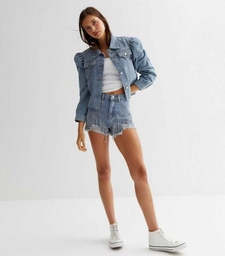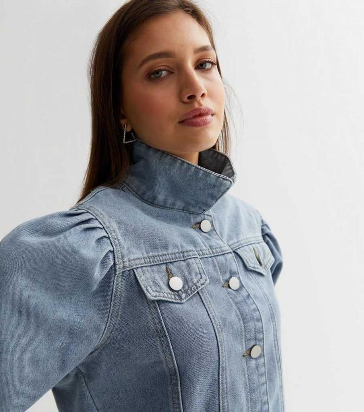 Pink Vanilla. Boasting puff sleeves that give it an edgy feel, this blue denim jacket is a must-have for this season and next. Simply styled, layer over a white tee and shorts for an instant summer-ready look.