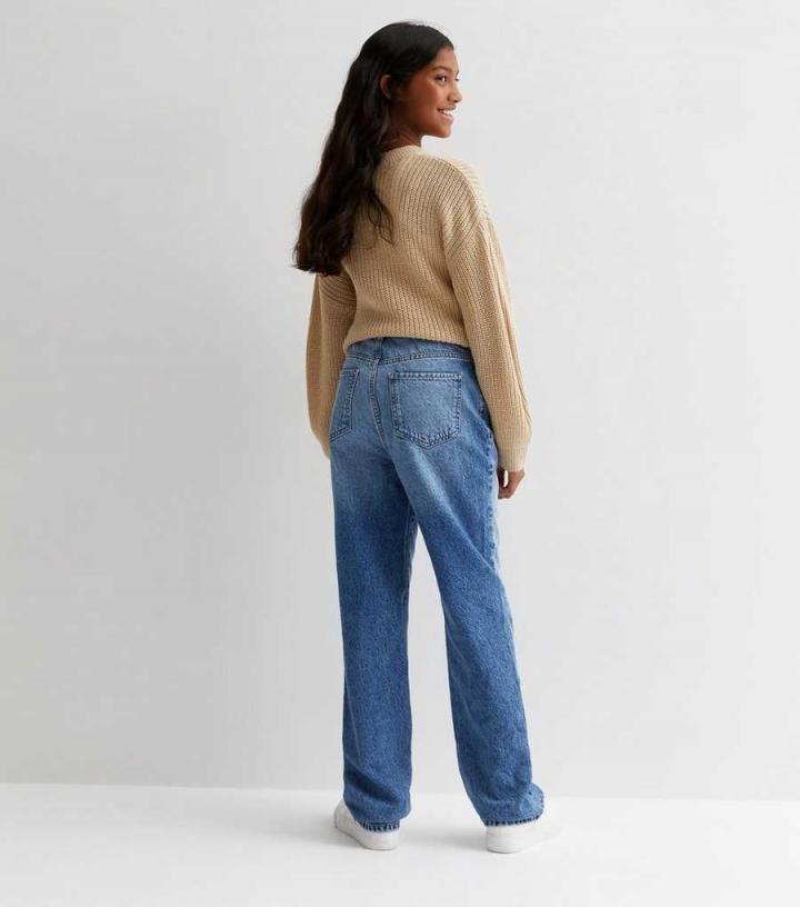 Jeans | New Look Girls Blue Ripped Full Length Anica Straight Leg Jeans
