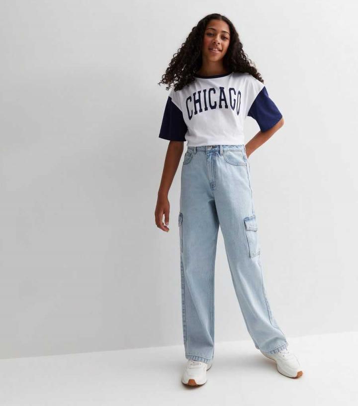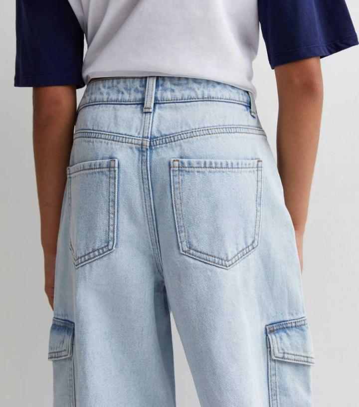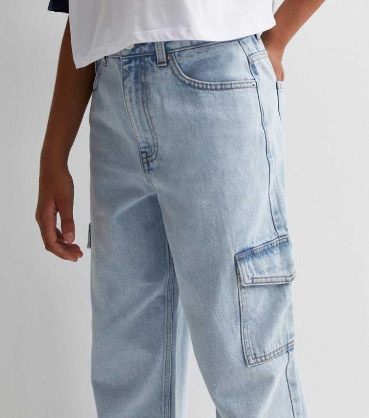Jeans | New Look Girls Pale Blue Wide Leg Cargo Jeans