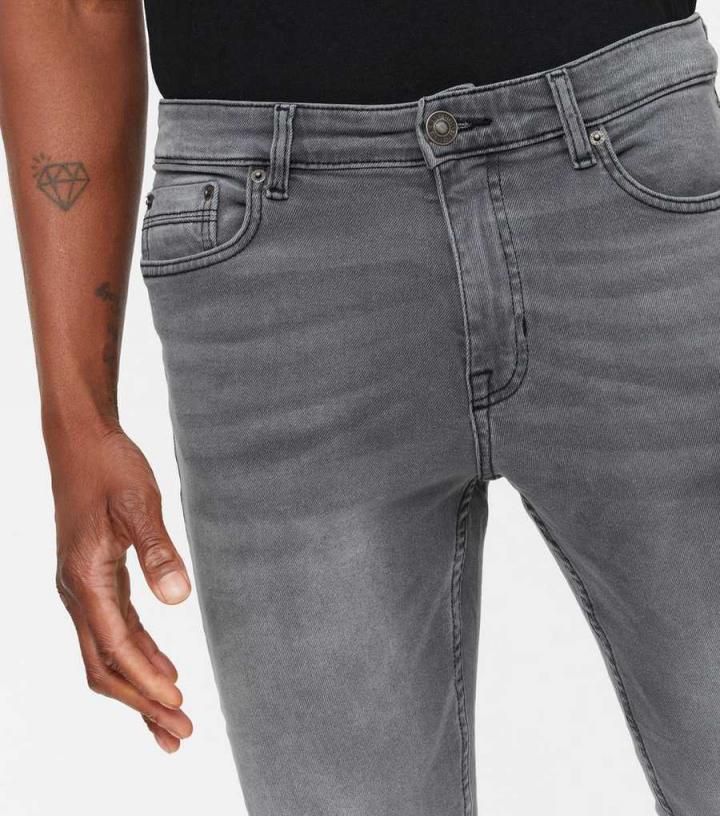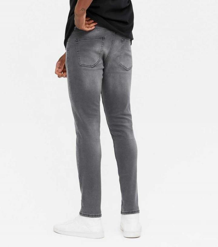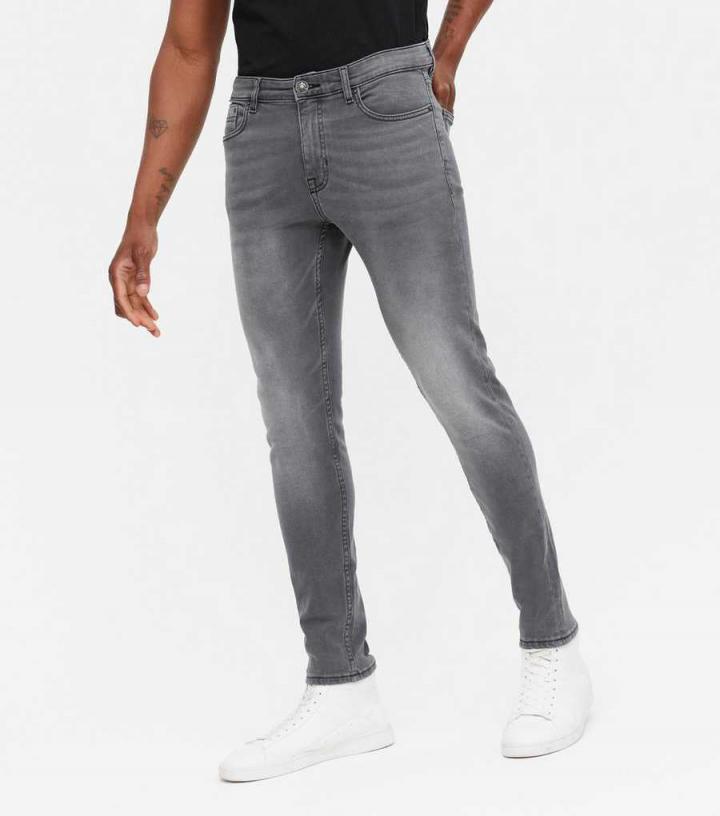 Mens Grey Washed Skinny Stretch Jeans New Look…