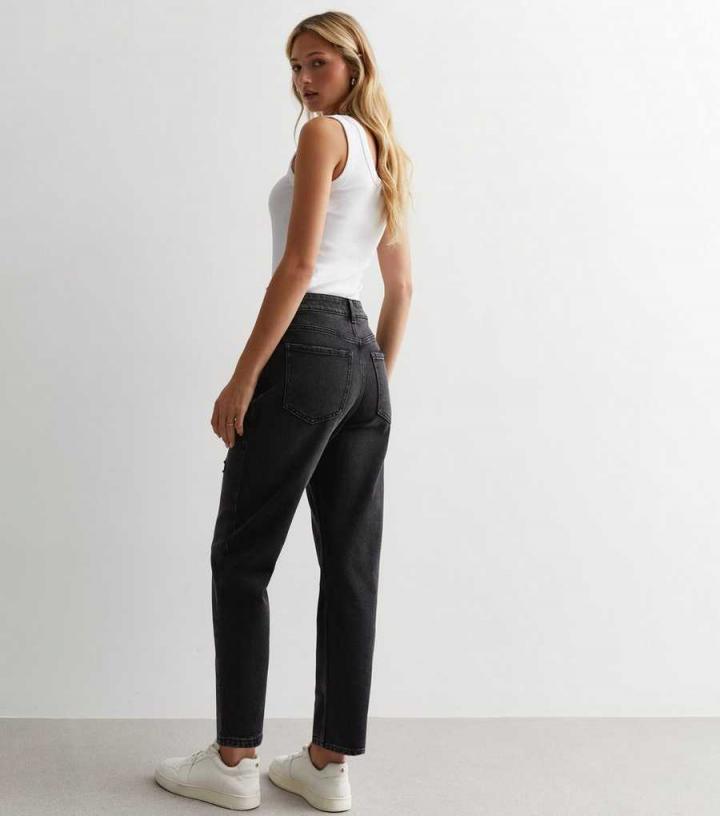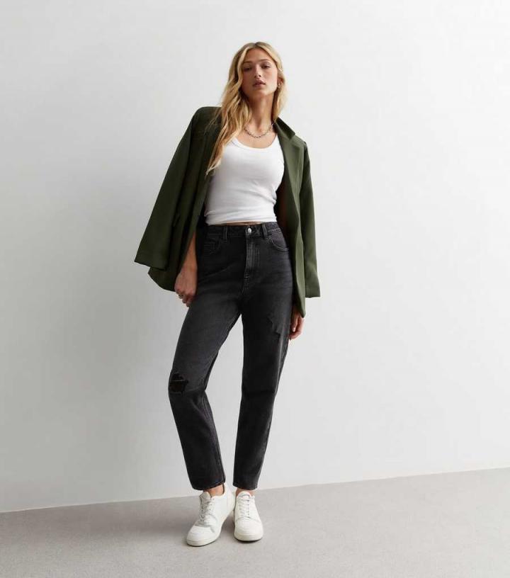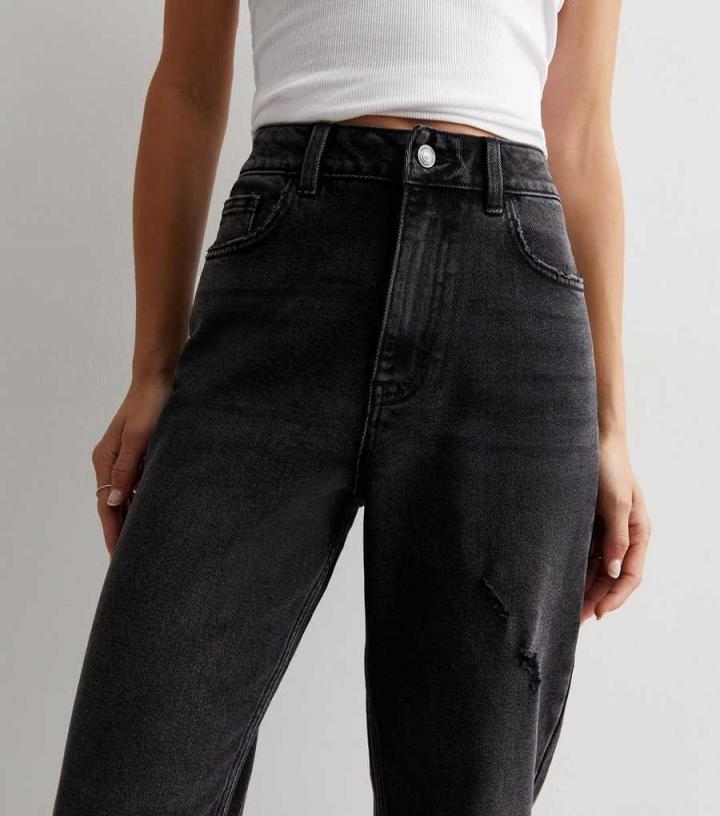 – Black, dark wash- Authentic non-stretch denim- Mom fit- Sits above the waist- Tapered, ankle grazing- Button and zip-fly fastening- Ripped knee- Distressed details- Belt loops- 5-pocket design