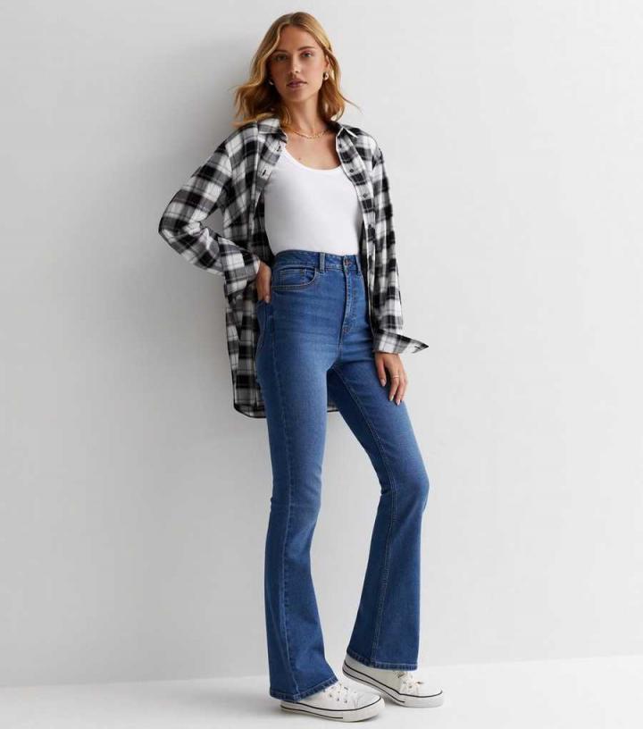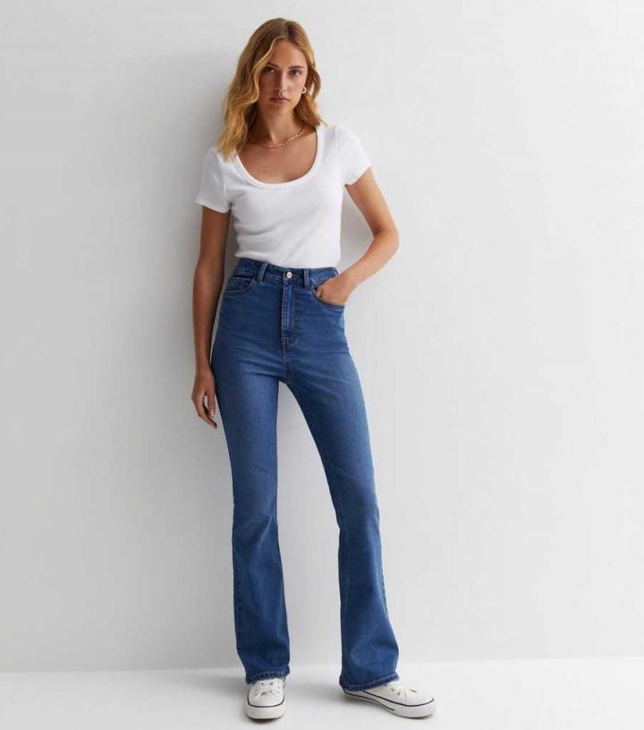 – Blue, medium wash- High stretch- Slim- Waist enhancing- Bootcut, full length- Belt loops- 5-pocket design- Button and zip-fly fastening- Model is 5’8"/173cm and wears UK 10 L32/EU 38/US 6