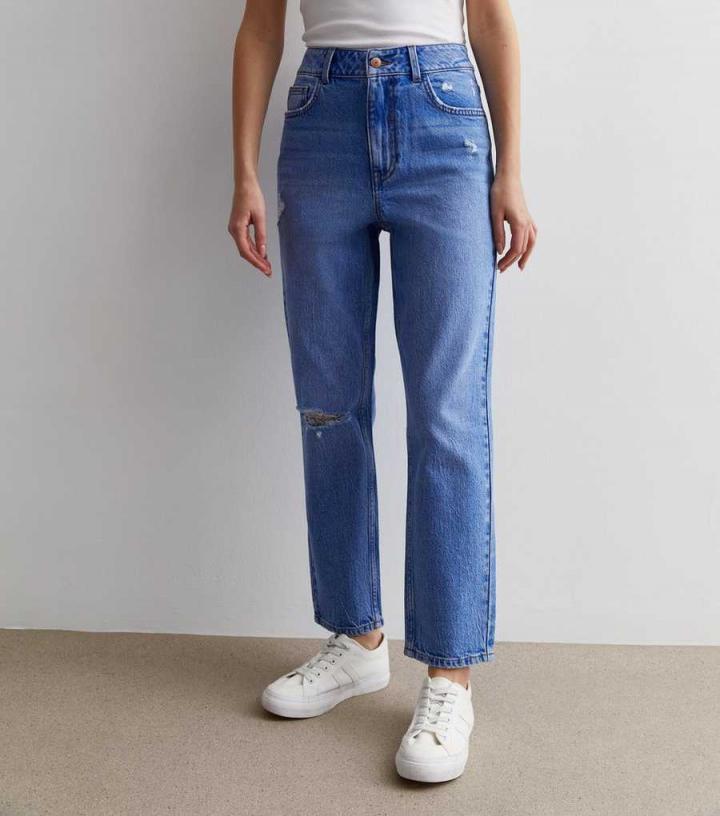 Say hello to the Tori. These high-waisted jeans are made with responsibly sourced cotton, making them better for your wardrobe and the planet, too. A bright blue colourway will see you through the seasons in style.- Bright blue- Authentic non-stretch denim- Sits above the waist- Belt loops- 5-pocket design- Tapered leg- Button and zip-fly fastening- Ripped knee- Distressed details- Mid wash denim- Slim fit- Model is 5’8"/173cm and wears UK 10 L32/EU 38/US 6