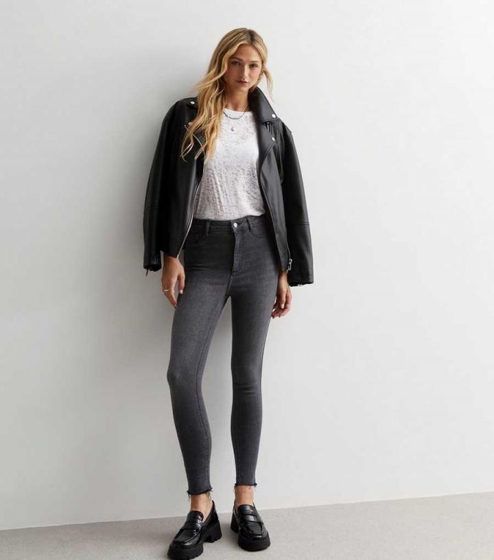 Jeans | New Look Womens Dark Grey High Waist Hallie Super Skinny Jeans