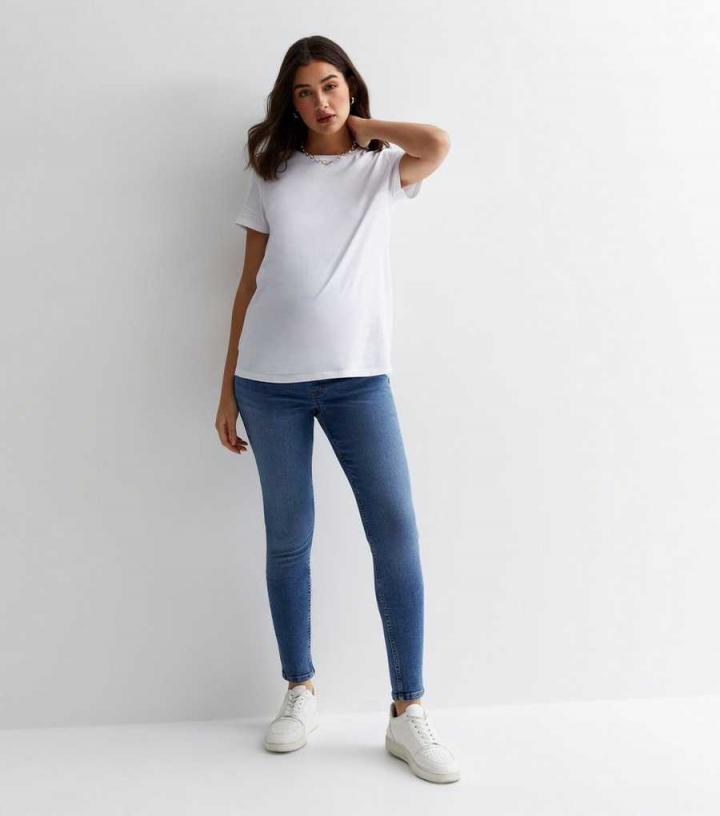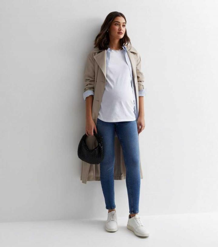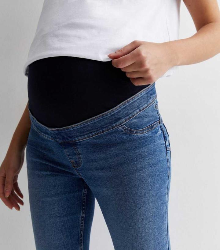 Maternity. Enter: the Emilee. Made with responsibly sourced cotton, these blue over-bump jeggings will add cool comfort to your wardrobe.- Online exclusive- High-stretch denim- Over-bump waist- 5-pocket design- Sculpting seams- Blue wash- Super-skinny fit- Model is 5’9"/175cm and wears UK 10/EU 38/US 6