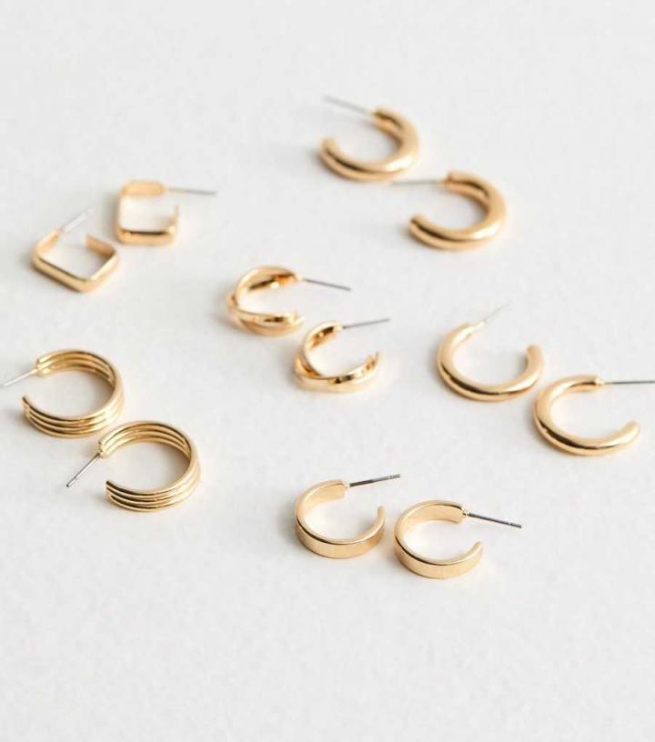 – 6 pairs of earrings included- Gold-tone finish- Mixed designs- Plain and twisted- Bullet-back fastening