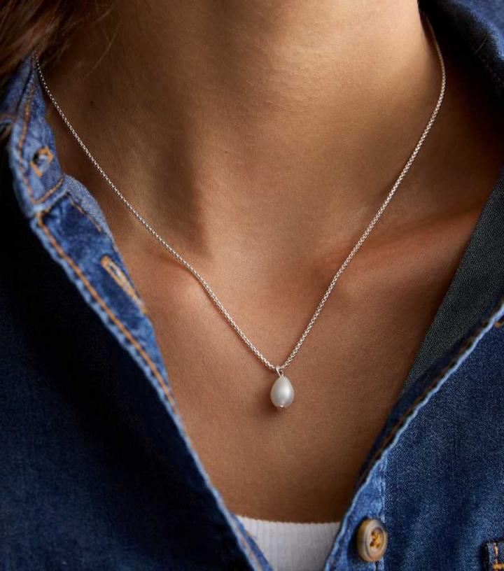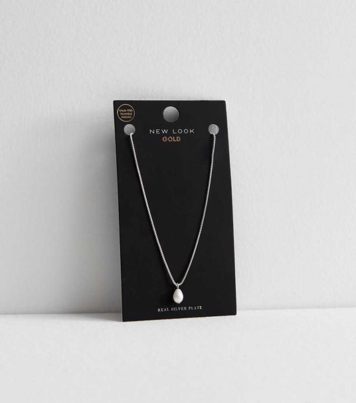 – Real silver plate- Faux pearl drop pendant- Chain design- Lobster-clasp fastening
