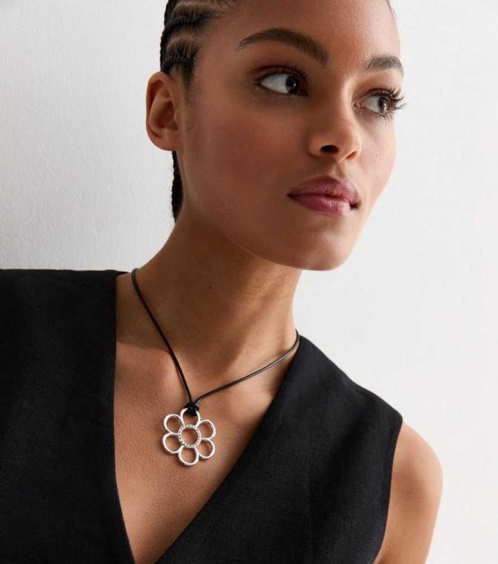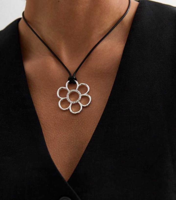 Jewellery | New Look Womens Silver Cut Out Flower Cord Necklace