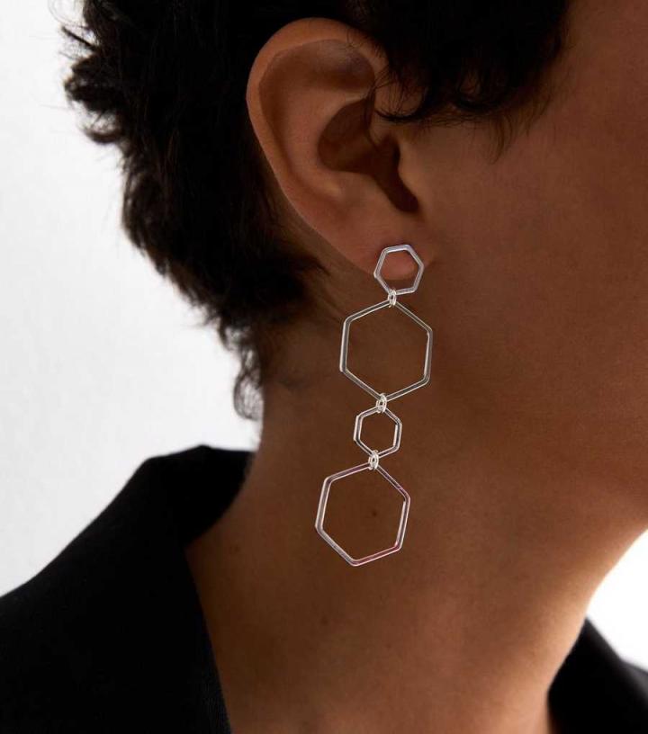 Refresh your jewellery collection with these silver hexagon earrings.