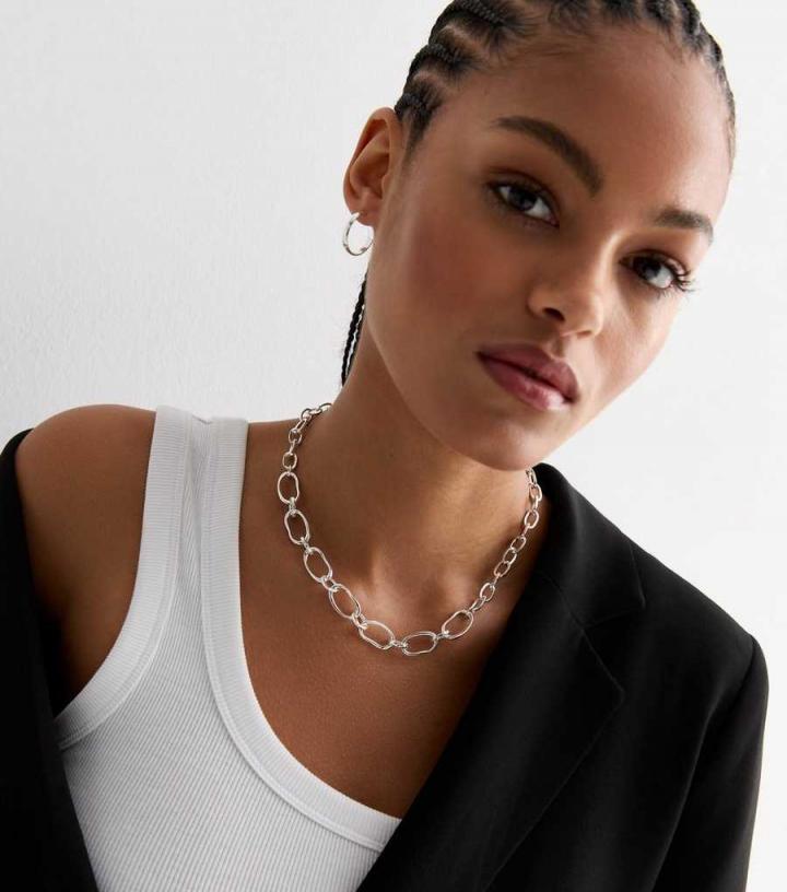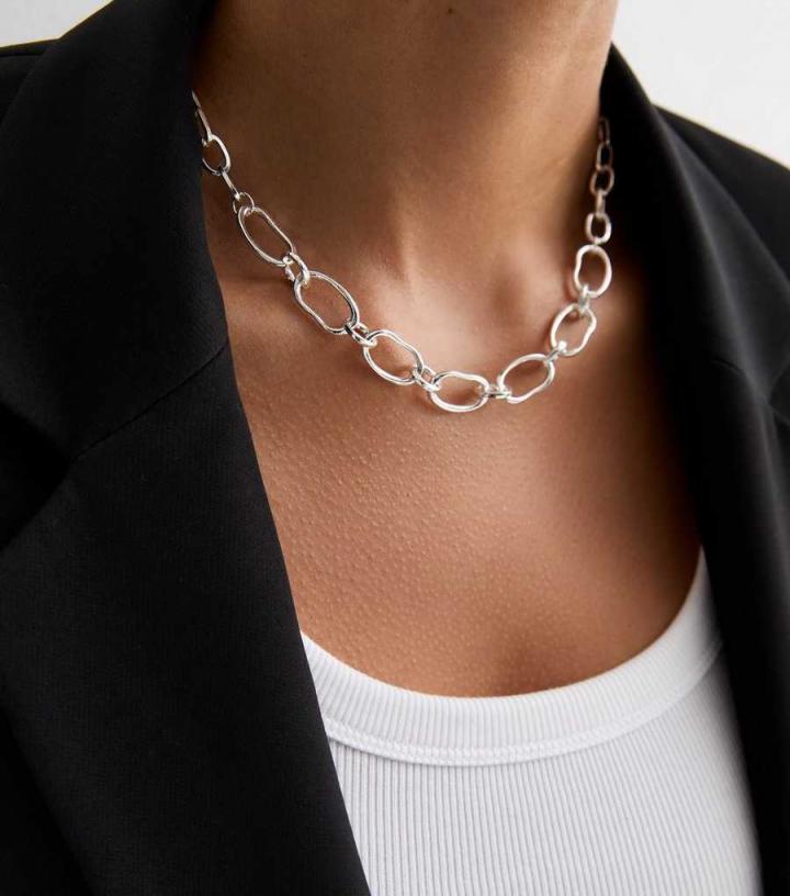 Jewellery | New Look Womens Silver Irregular Oval Link Necklace
