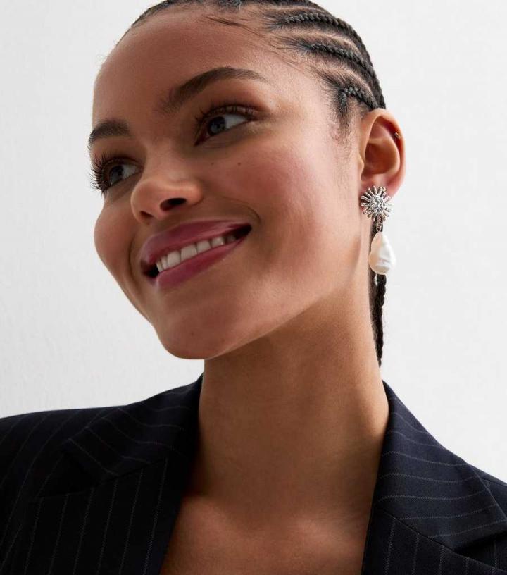 Jewellery | New Look Womens Silver Sun Faux Pearl Drop Earrings