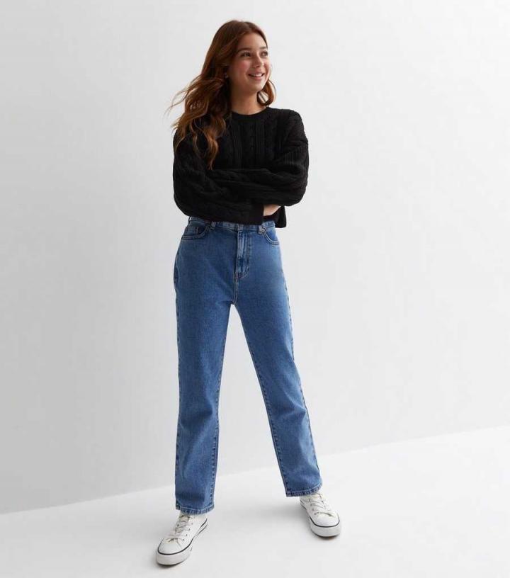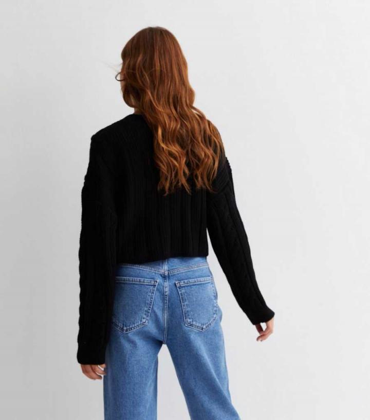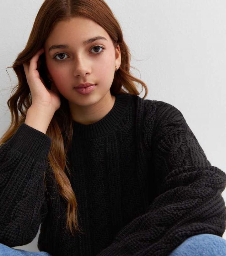 GirlsBlack Cable Knit Crop Jumper New Look…