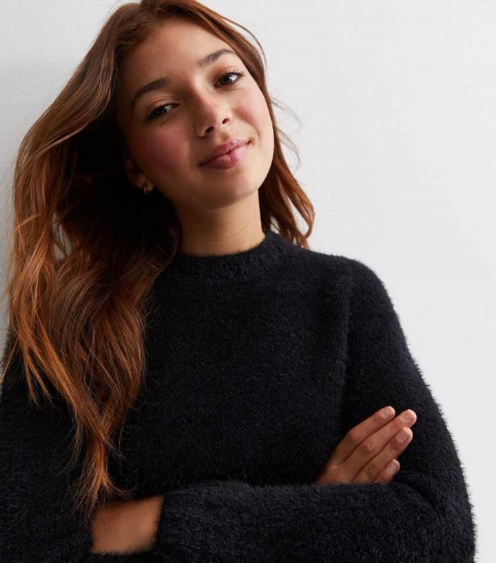 GirlsBlack Teddy Crop Jumper New Look