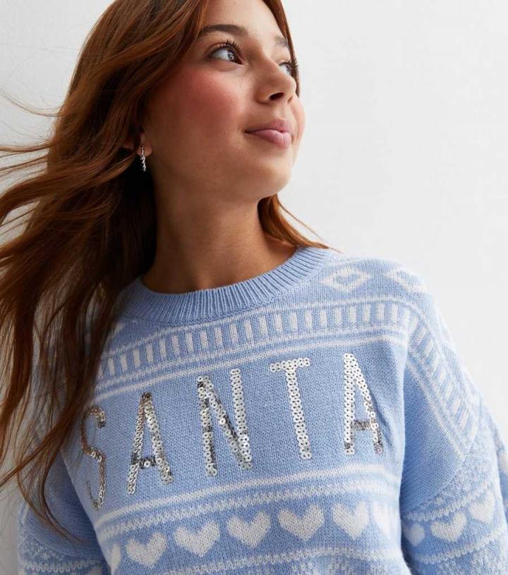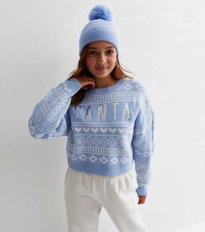 Jumpers & Cardigans | New Look Girls Blue Santa Fair Isle Christmas Jumper