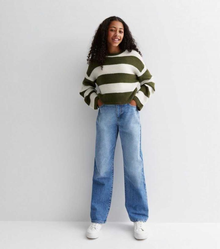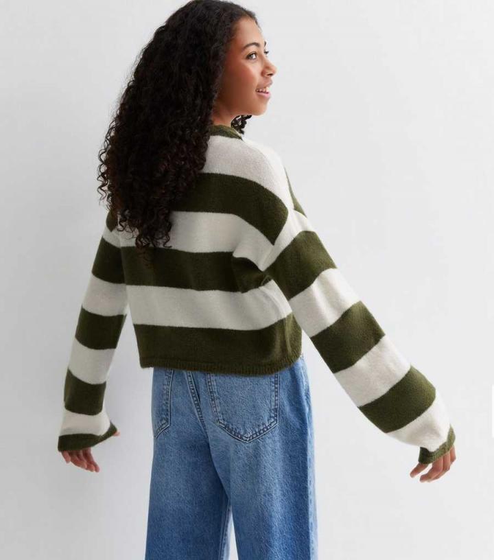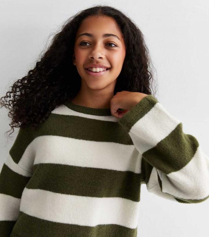 GirlsGreen Stripe Fluffy Jumper New Look…