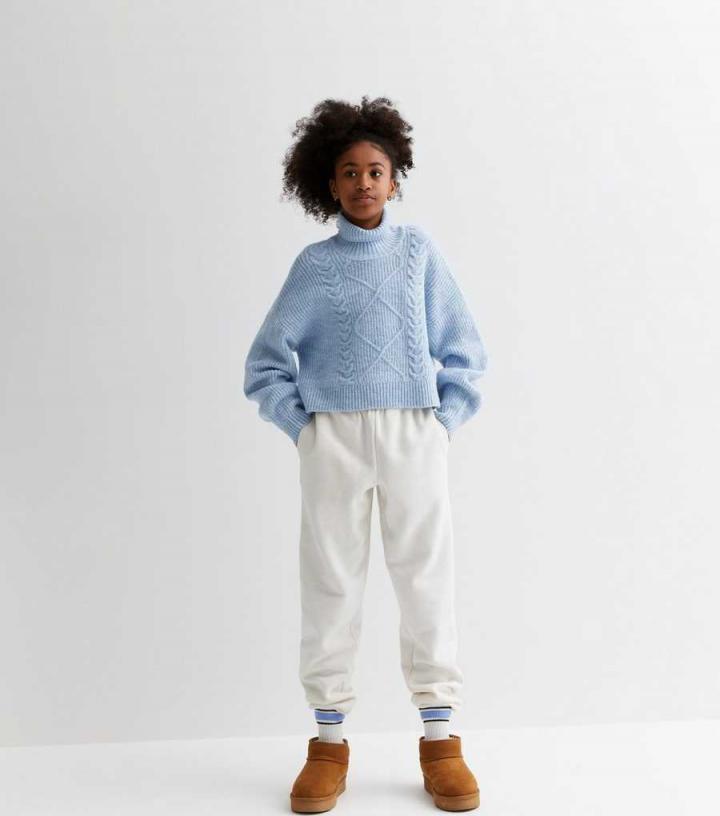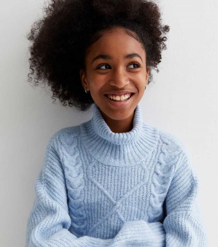 GirlsPale Blue Cable Knit Roll Neck Jumper New Look…