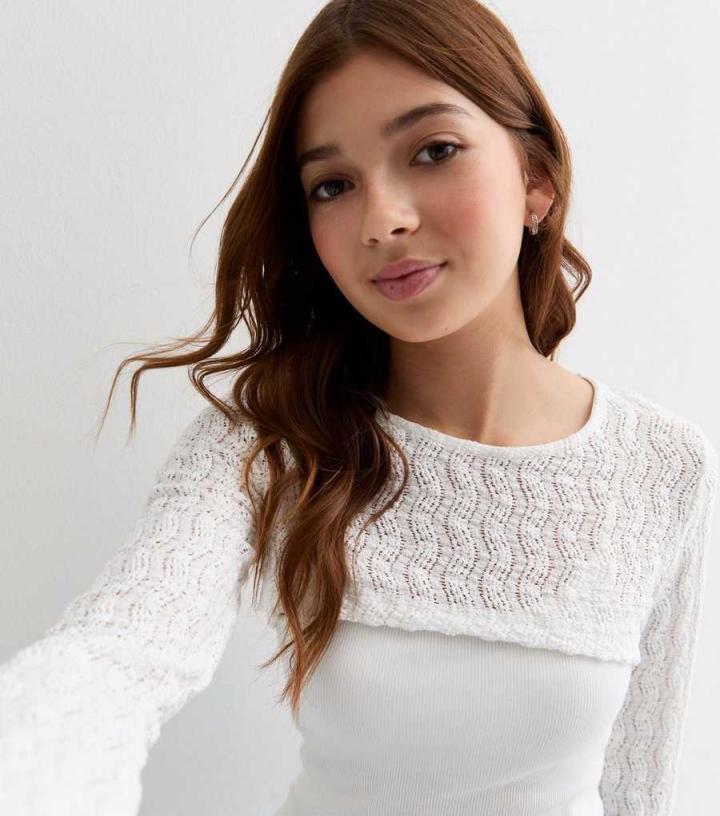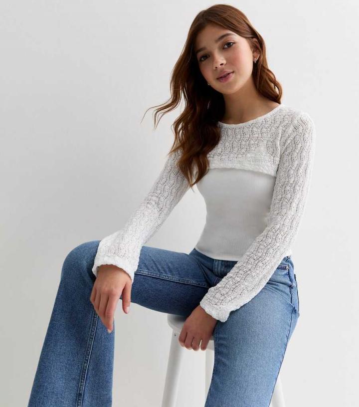 GirlsWhite Open Knit 2-in-1 Top New Look…