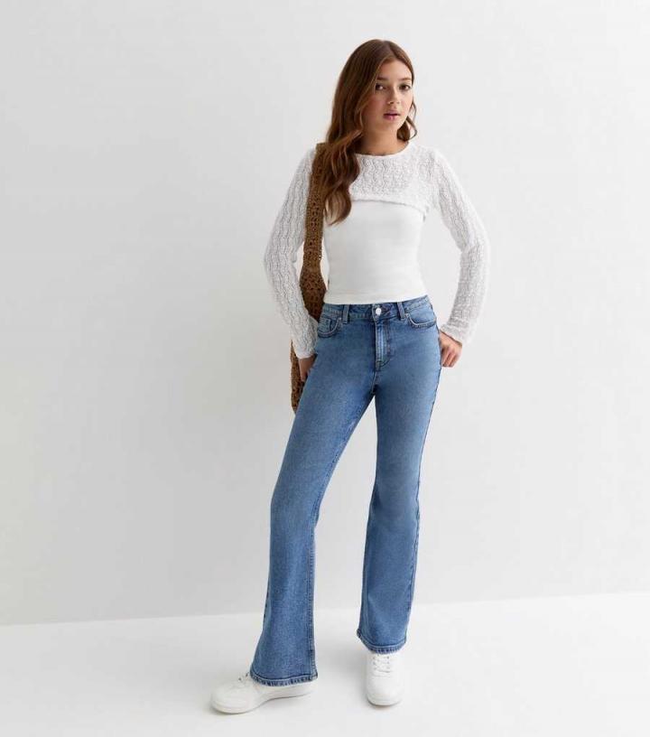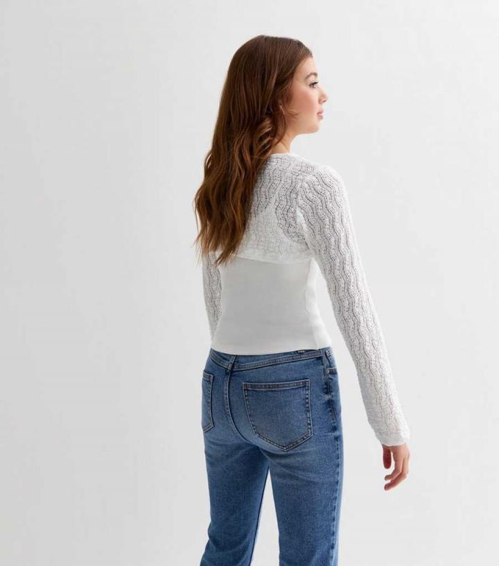 GirlsWhite Open Knit 2-in-1 Top New Look