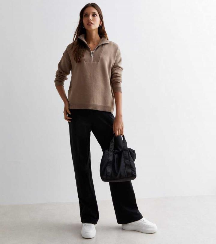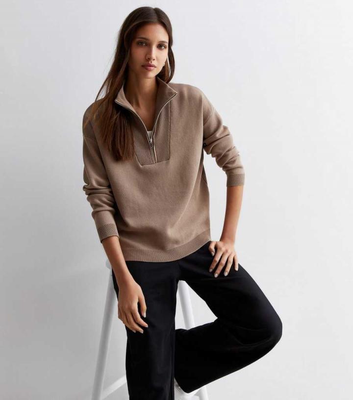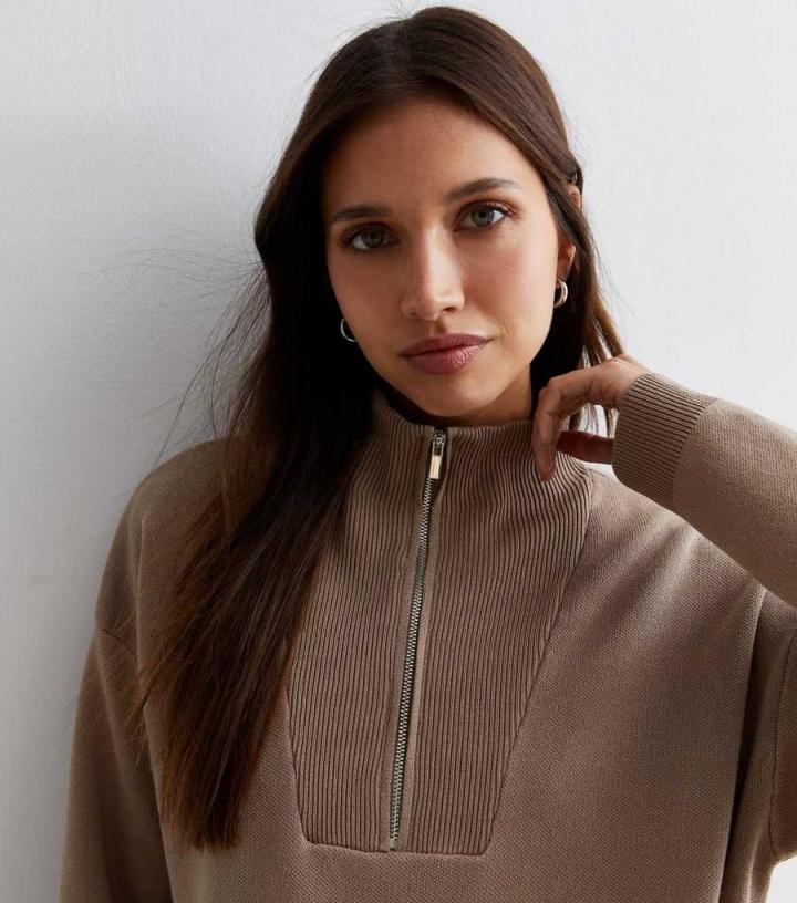 Jumpers & Cardigans | New Look Womens Brown Ribbed Zip Neck Jumper